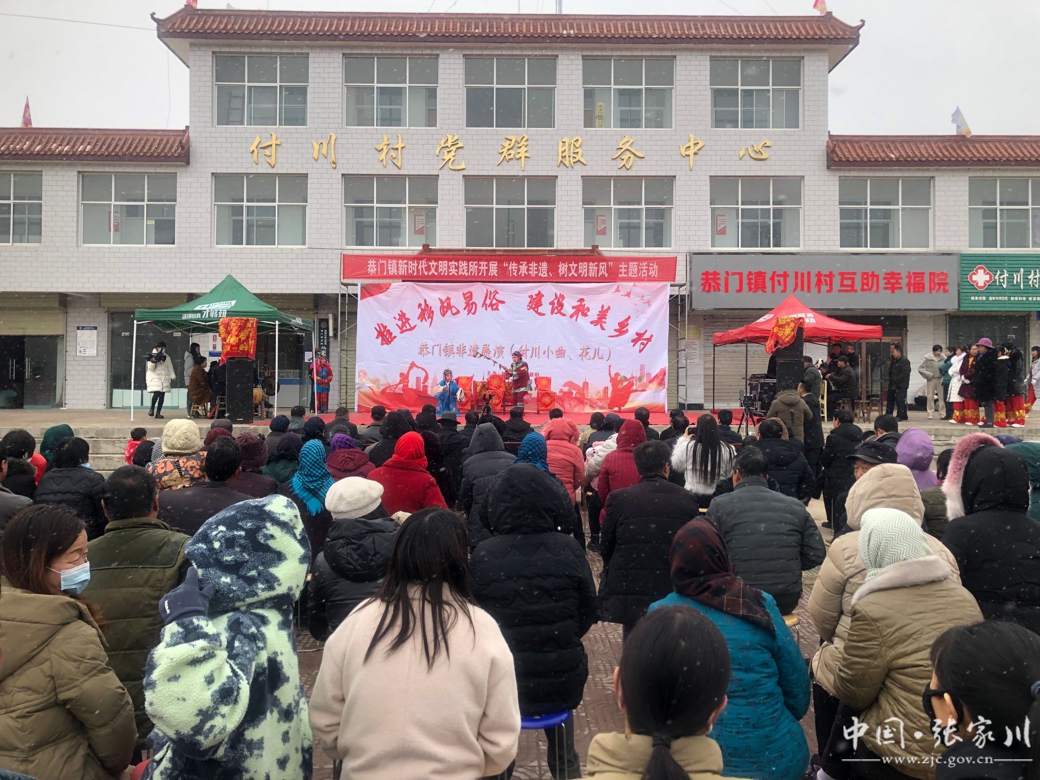恭门镇文化站长窦伟伟介绍道:“付川小曲是生活在张家川付川村这一区域人民群众在长期的劳动生活中自己创作、自己演唱的一种民间曲艺,融合了本地山歌小调的唱法,已经被列入市级非物质文化遗产名录。其是反映中华传统文化风貌的宝库,是乡土化、艺术化的村规民约,也是对群众开展社会主义核心价值观教育的鲜活教材,利用小曲原调创编出的新人新事的曲目,能够给群众带来欢乐、生气,在传承曲艺、和睦邻里、教化民风、寓教于乐、移风易俗等方面起到了重要作用。”