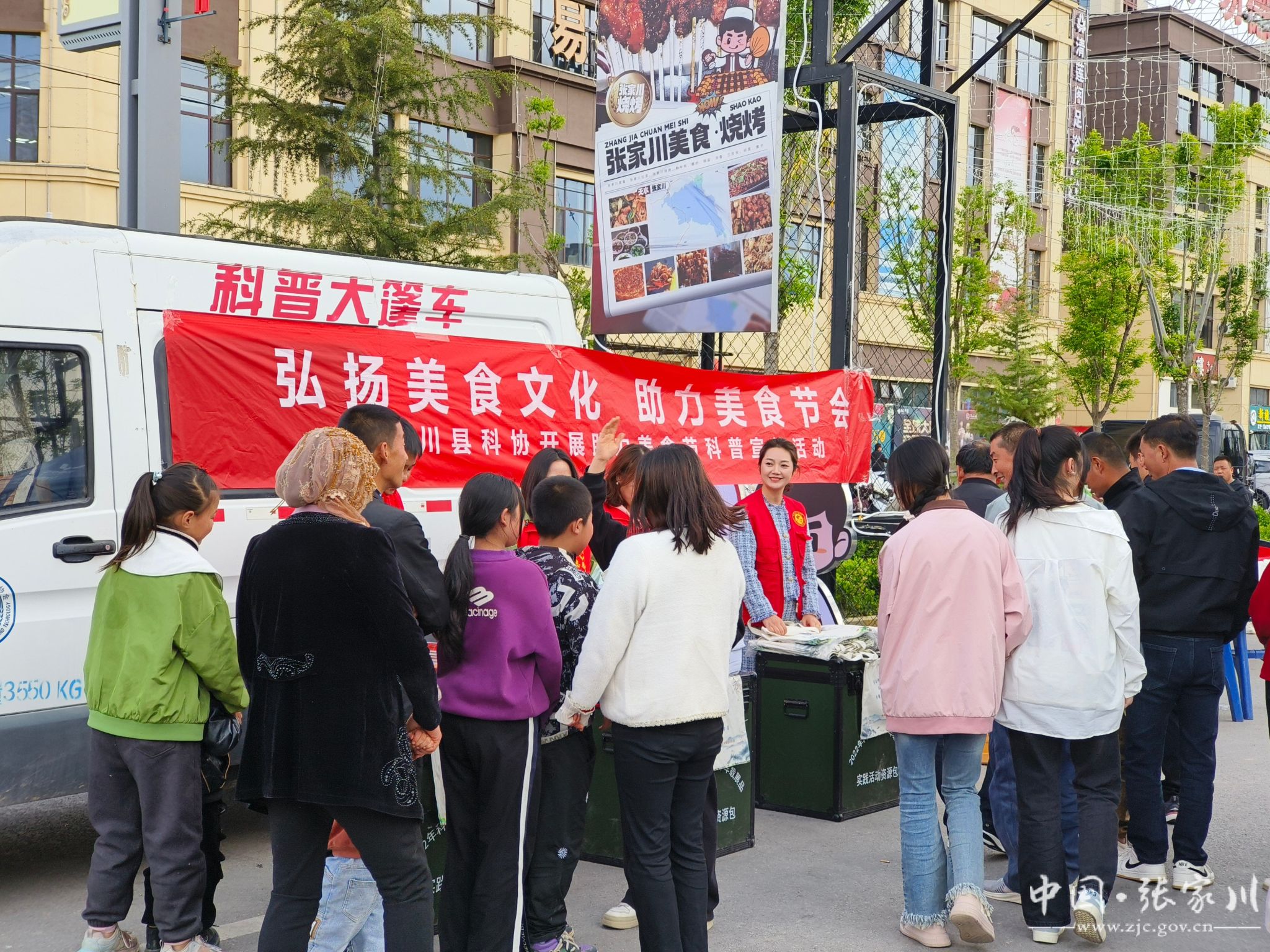 科普进节会,助力经济发展。为了让科普活动更加贴近群众的生活,张家川县科协科普大篷车缓缓驶入易德广场美食街。向市民现场讲解合理膳食与健康养生知识,普及食品添加剂的危害和正确的食品储存方法,现场发放《健康养生》《科普知识读本》《社区居民科普知识读本》等书籍2200余本,科普宣传袋1600余个,持续加强广大群众对美食文化的理解传承,助力张家川美食节会火热开展。