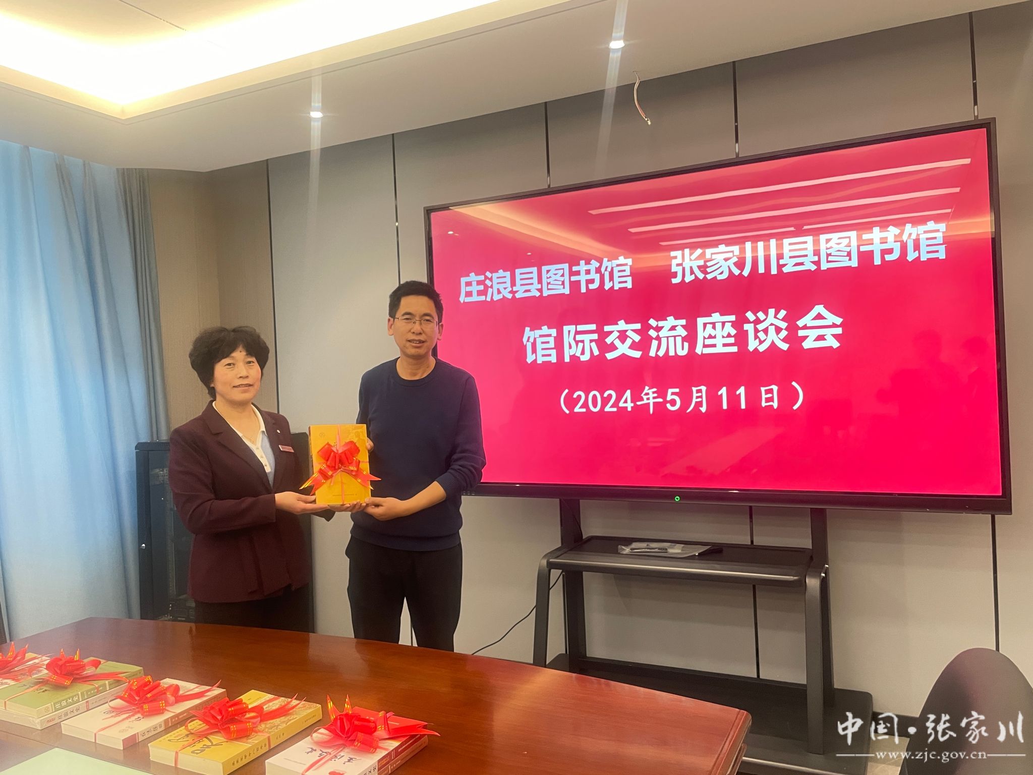 期间,庄浪县图书馆向张家川县图书馆赠送了《庄浪文史》等地方特色文献资料,随后两地开展座谈交流。庄浪县图书馆表示,庄浪县图书馆将根据自身实际情况,因地制宜地学习和借鉴张家川县图书馆的成功经验,进一步提升服务水平,为市民提供更加优质的阅读体验。双方表示,此次馆际交流通过馆际交流,互学互鉴,不断增强文化馆之间的沟通与协作,为开展多渠道、多层次、多形式的文化交流活动,共同推动公共文化服务高质量发展拓展了工作思路。