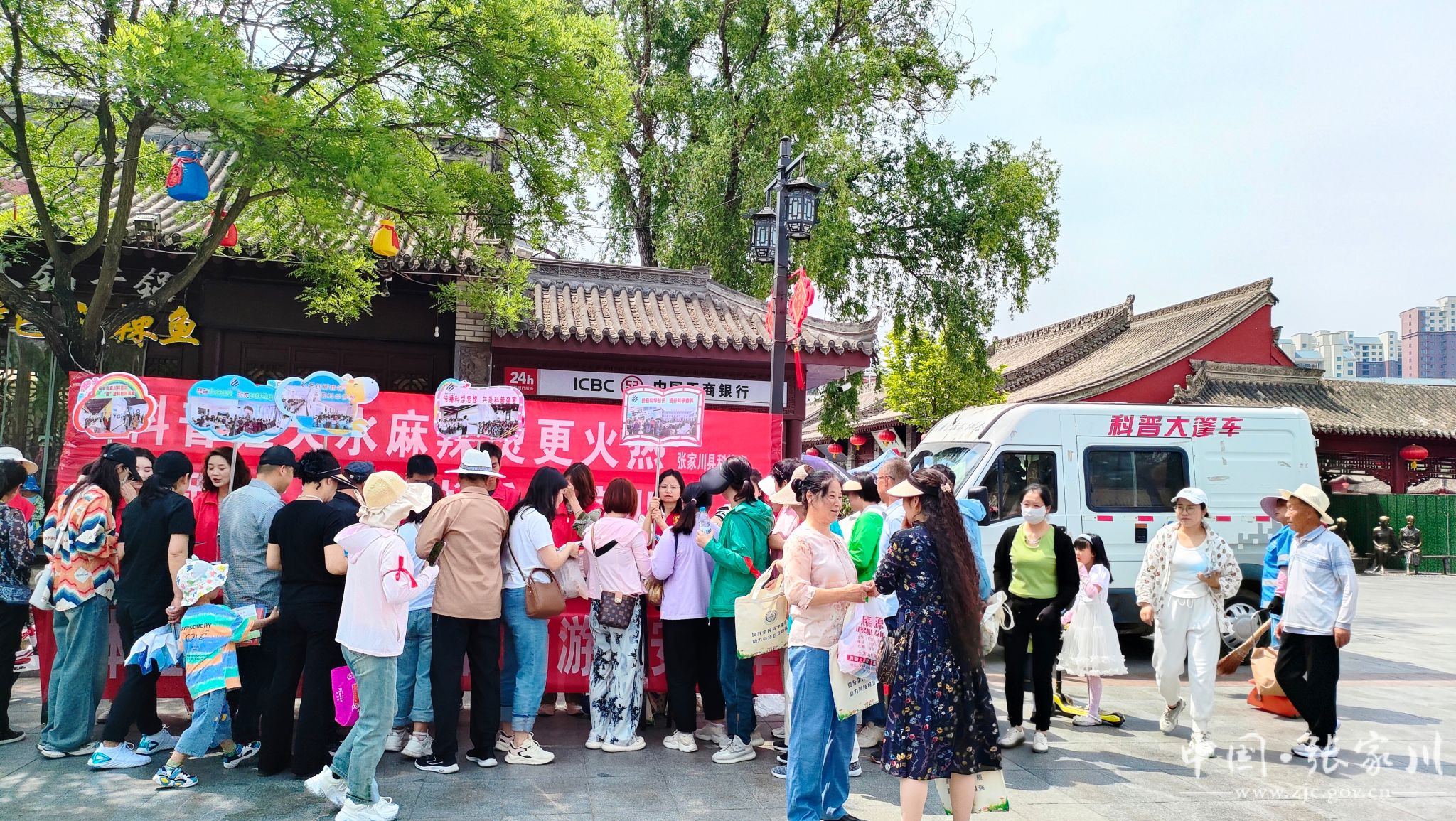 为大力弘扬美食文化、展示龙城形象,持续增强广大群众对美食文化的理解传承,普及合理膳食与健康养生知识,5月18日,县科协科普大篷车走进天水市步行街及伏羲庙,结合“丝路大关山 书香张家川”建设,在天水市城区开展“品天水麻辣烫 游丝路张家川”科普宣传活动。