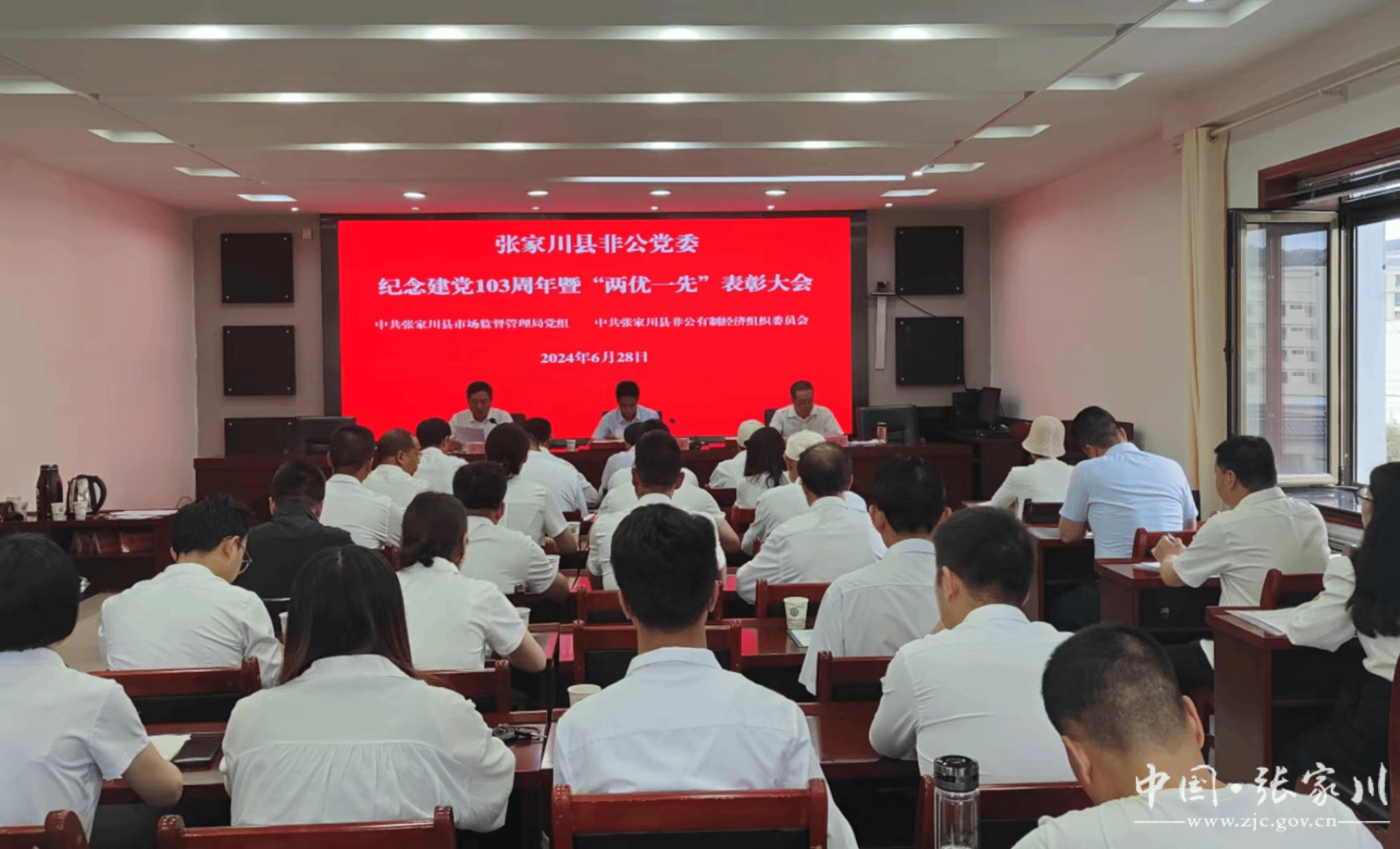 6月28日上午,张家川县非公党委组织召开庆祝建党103周年暨“两优一先”表彰大会.县非公党委委员、“光荣在党50年”的老党员、非公经济组织受表彰人员,纳新党员共计50余人参加会议。