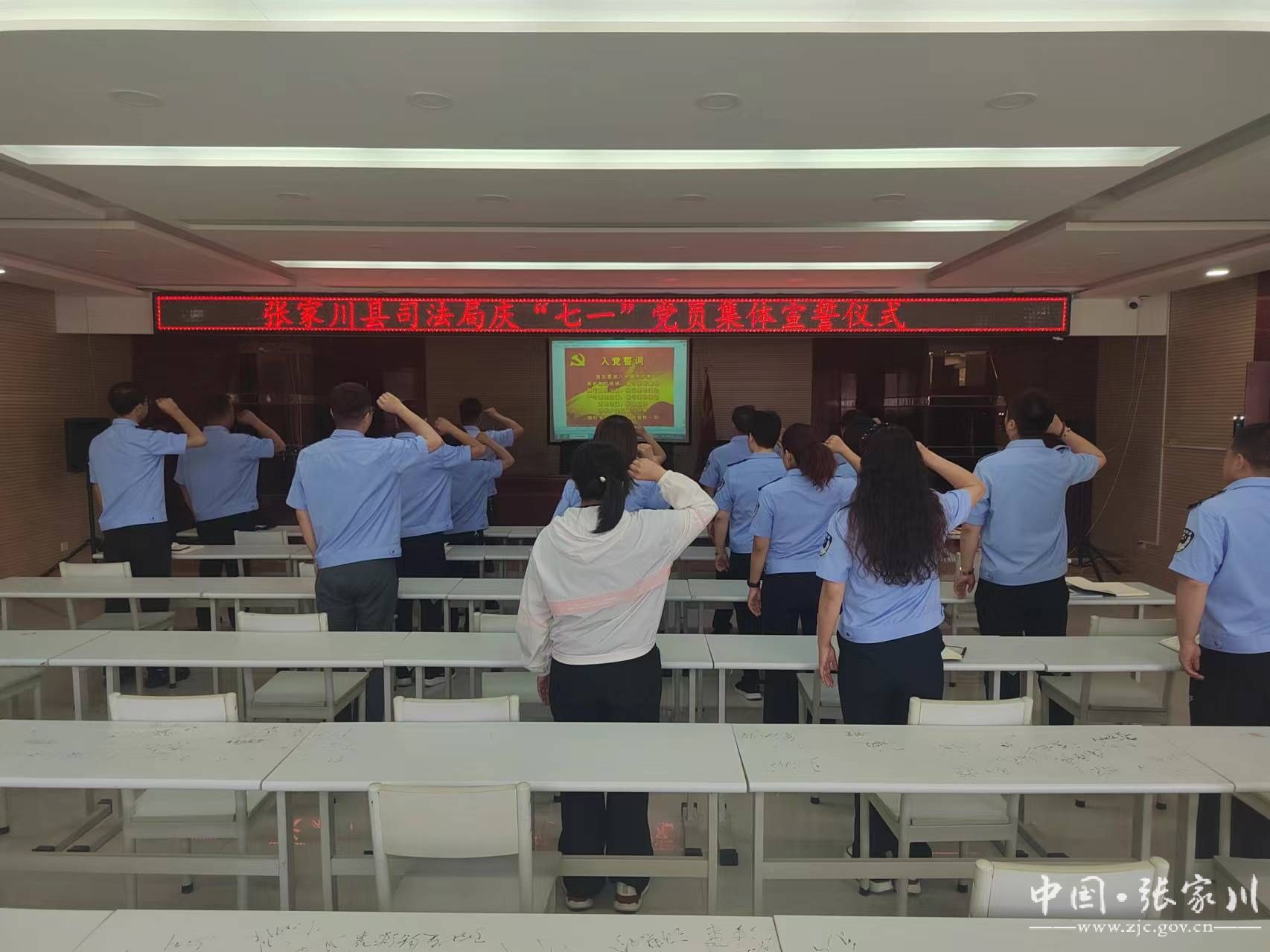 开展宣誓活动。全体党员重温入党誓词。通过庄重的集体宣誓,进一步教育引导党员坚定政治立场,牢记党的宗旨,强化党员意识,认真履行党员义务,立足岗位做奉献,全力推动司法行政各项工作提质增效。