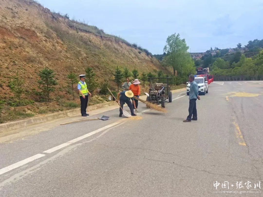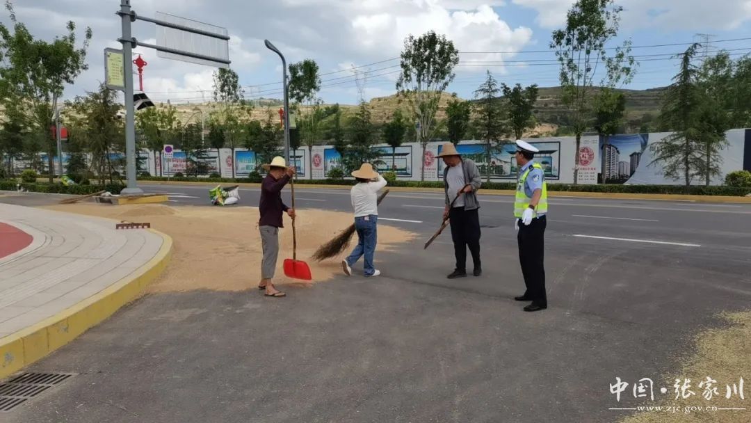 眼下正值麦子成熟收割季节,不少农民把公路当成晒麦场,不仅影响道路通行秩序,还存在很大的交通安全隐患,极易引发交通事故。为确保道路交通安全畅通,近日,张家川县公安局交警大队积极开展公路“打场晒粮”整治和宣传劝导活动。