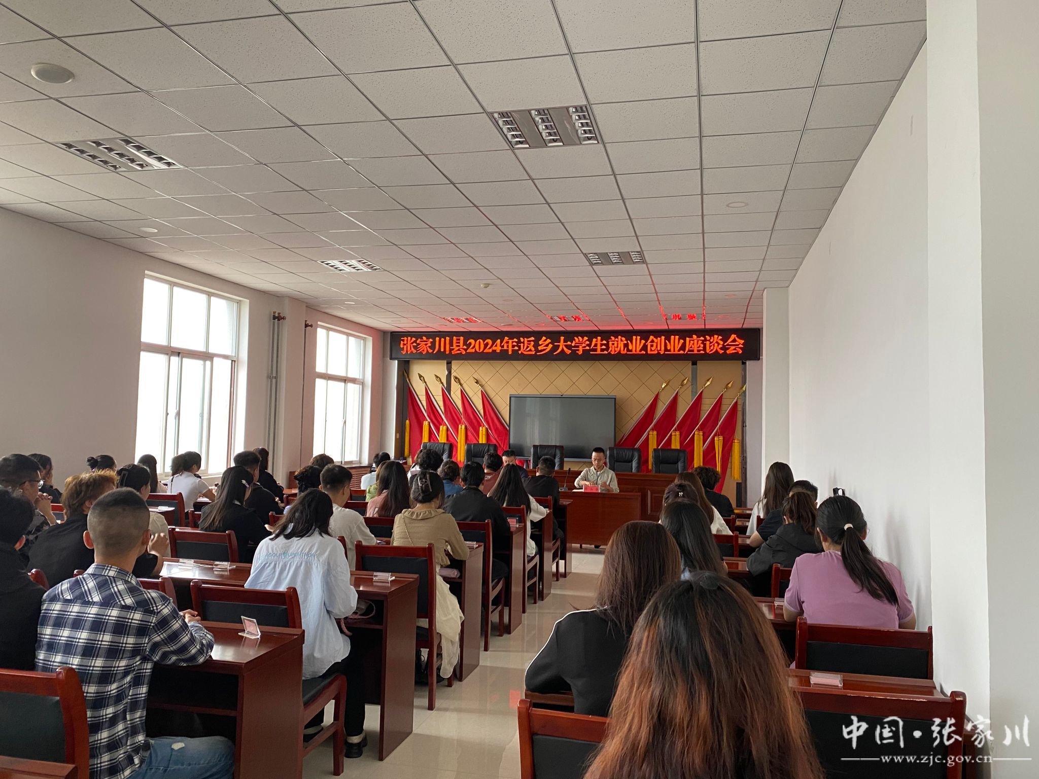 为进一步引导返乡大学毕业生就业基层、扎根基层、服务基层,7月10日,共青团张家川县委、县人力资源和社会保障局联合召开张家川县2024年返乡大学生就业创业座谈会。团县委、县人社局、返乡大学毕业生代表共计80余人参加。