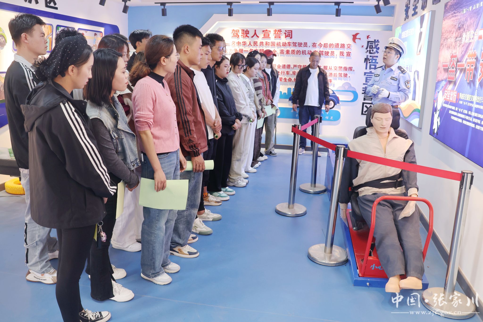随后,民警带领驾校学员体验了教育阵地内的安全带碰撞、醉酒驾驶、飙车等体验设施,通过边体验边讲解的方式让驾校学员亲身感受驾车出行时,不系安全带、醉酒驾驶、疲劳驾驶、超速、超载、超员、闯红灯等交通违法行为的危害,使其明白自觉遵守交通安全的重要性,引导他们摒弃交通安全陋习,文明出行。