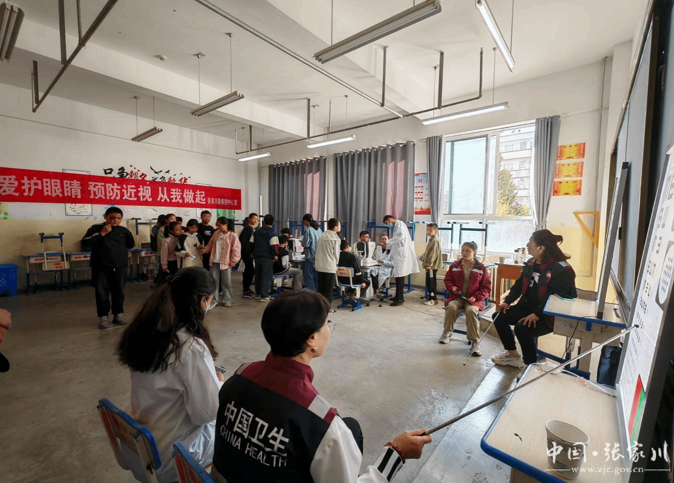 9月份以来,结合学生健康体检,疾控中心工作人员对青少年进行爱眼护眼、预防近视的健康宣讲,向学生发放预防近视宣传彩页和宣传品,与学生共同宣读“用眼有度、休息有方、健康视力伴我行”主题口号,并倡导青少年每天户外活动2小时、科学规划学习和娱乐时间、避免长时间注视屏幕、合理饮食、建立良好睡眠习惯等。