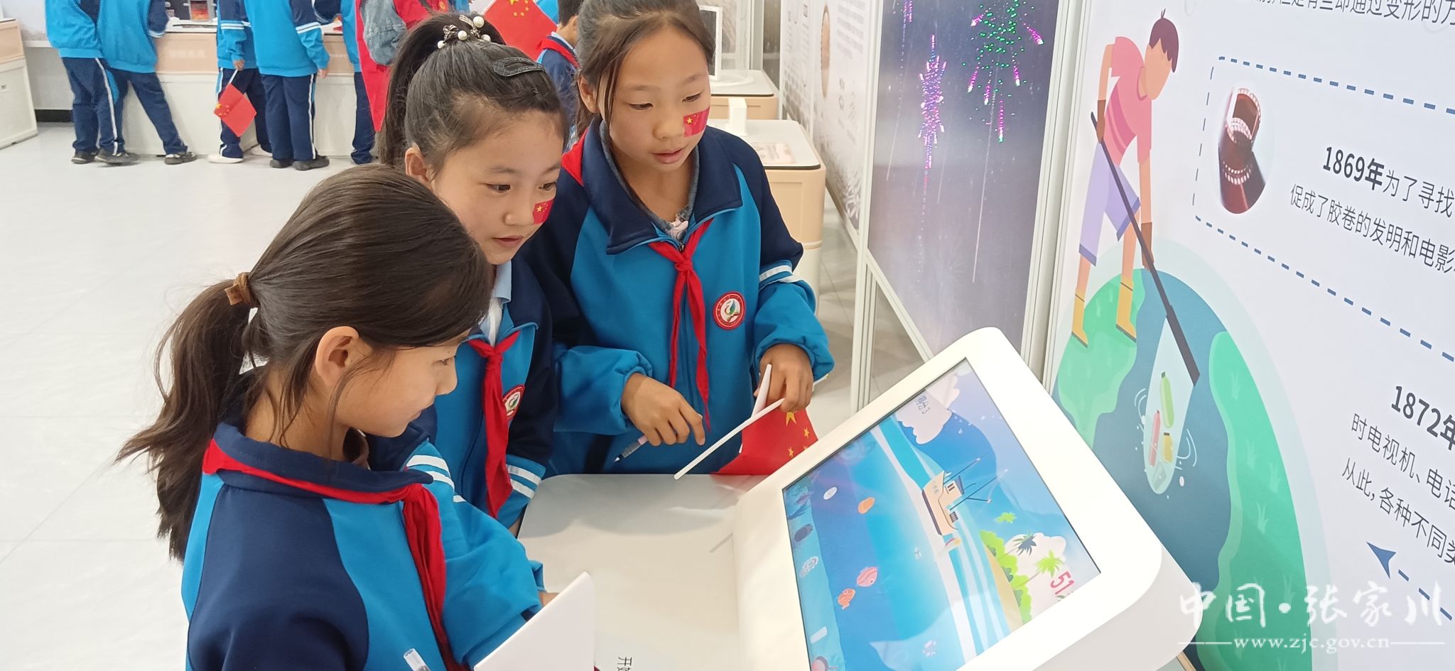 第一站孩子们来到了科技馆,科技馆内洋溢着浓厚的节日氛围。在这里,孩子们和“爱心妈妈”同唱红歌《我和我的祖国》、《十月是你的生日》。激昂的歌声回荡在科技馆的每一个角落,表达着对祖国的热爱和祝福。