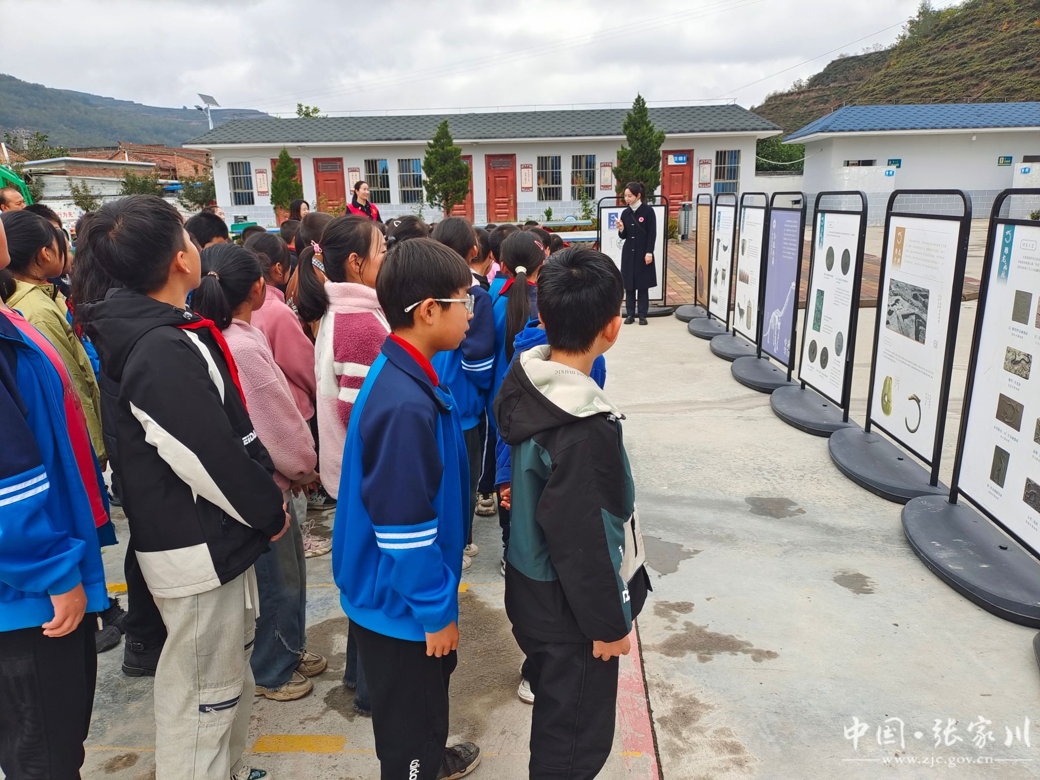 讲解员组织师生参观博物馆流动展览,让其了解张家川深厚的历史文化底蕴,激励学生家国情怀,坚定文化自信。