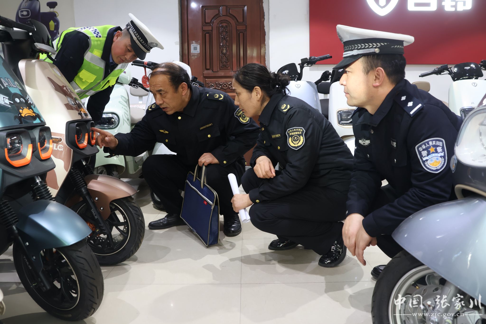 为深入推进电动车安全隐患全链条整治行动,进一步加强电动车源头安全监管,近日,张家川县公安局交警大队在严格登记管理的基础上,积极联合县市场监督管理部门对辖区电动车销售企业开展联合执法检查,严厉打击超范围经营、销售不合格产品和非法改装车辆等违法行为。
