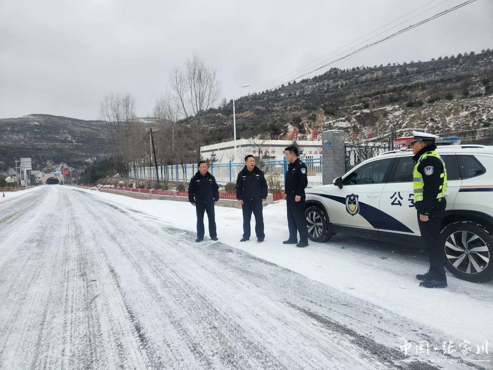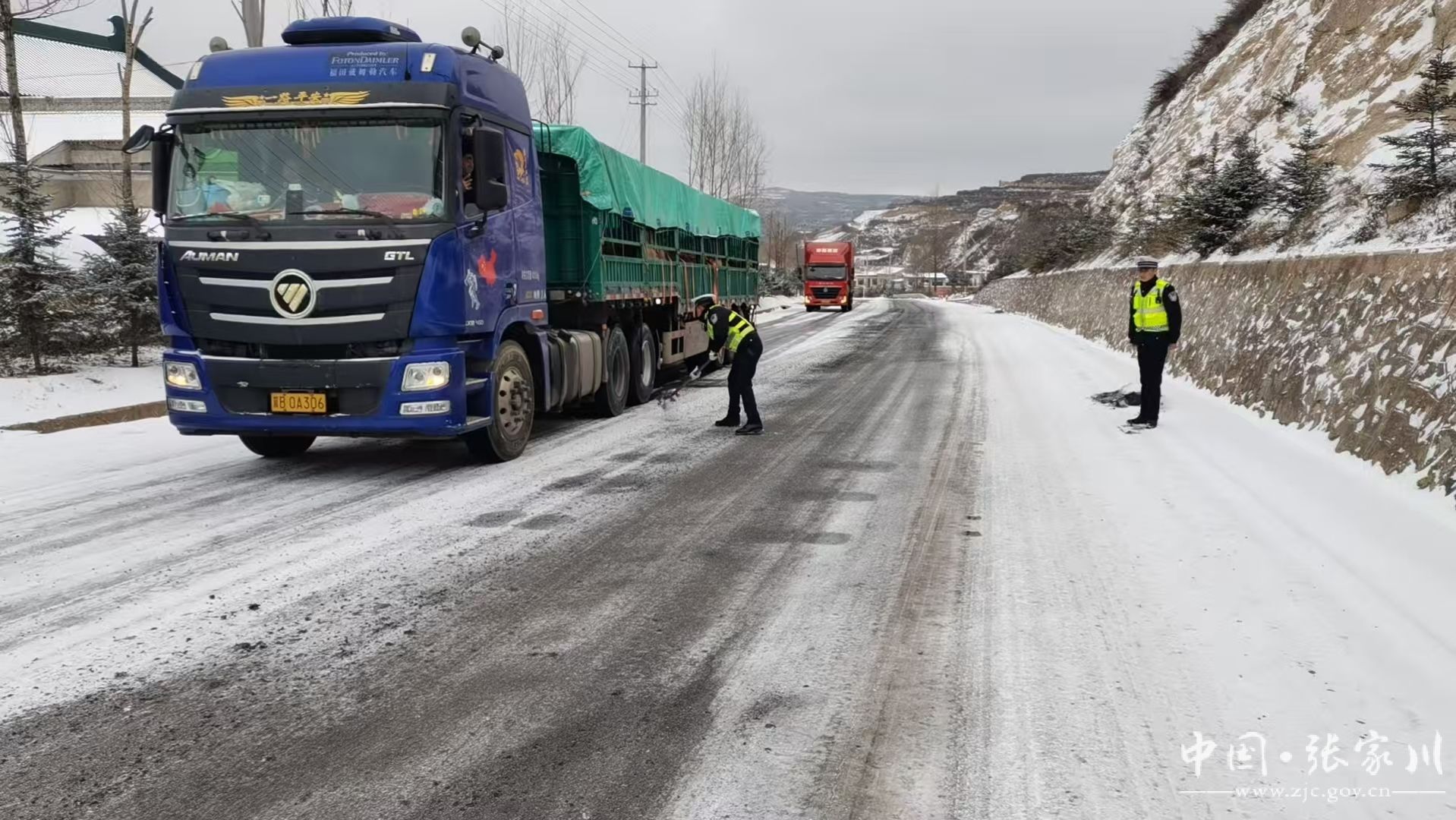 受降雪天气影响,我县辖区出现积雪冰冻天气,路面湿滑,行车困难,给人民群众出行带来了极大的不便,同时也给道路交通安全带来了极大的安全隐患。为了全力预防道路交通事故的发生,确保人民群众生命财产安全,12月9日,张家川县公安局交警大队积极应对迅速部署,充分准备后全警出动,采取各类应急措施,全力做好雨雪天气交通应急管理工作,确保辖区道路交通安全畅通。