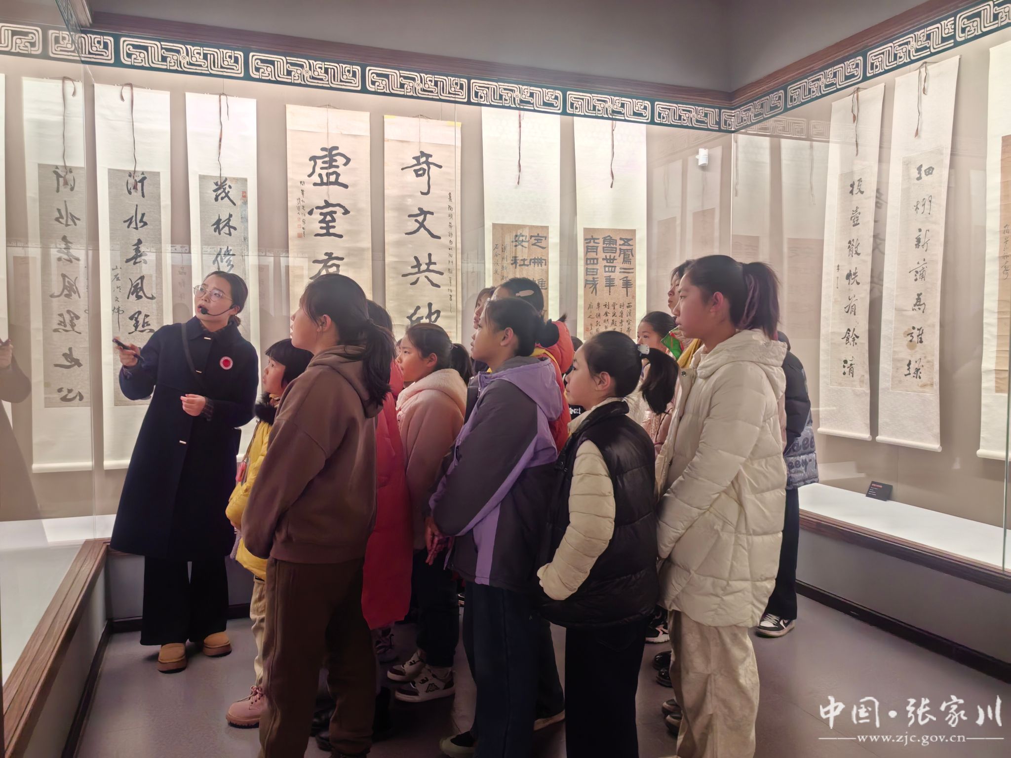 活动伊始,讲解员组织参观馆了“春风驰翰墨 盛世著华章”清代对联特展,为孩子们讲解书法作品及其背后的故事。参观结束后,社教老师通过书画作品引入春联的来历和和相关知识,让青少年了解和感受着中国传统文化的博大精深和春联的艺术魅力。