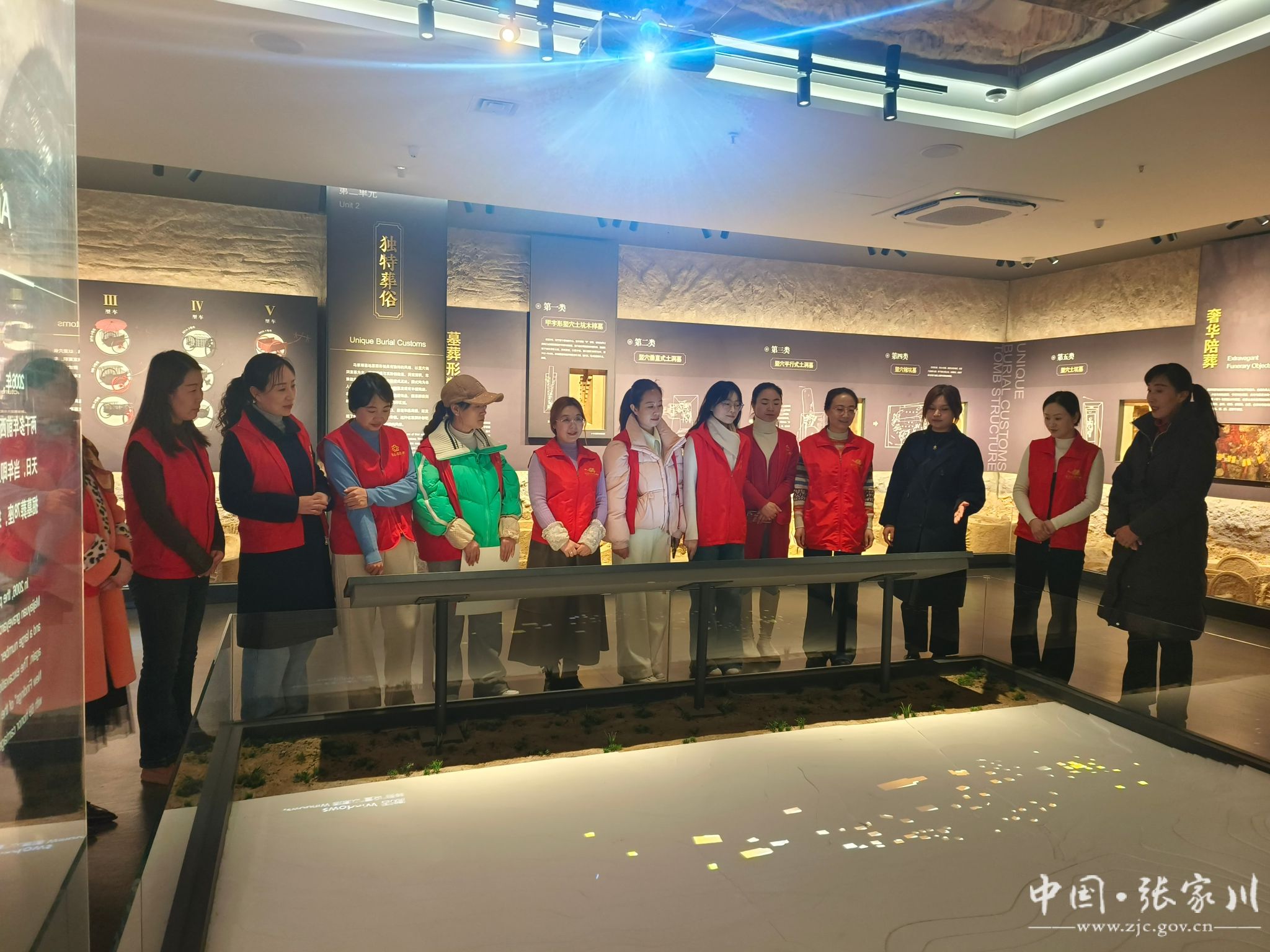 “着汉服华裳 品博物古韵”参观活动。博物馆志愿者身着汉服和红色马甲,在讲解员的带领下按照规划路线参观马家塬车舆博物馆,分享文物及其背后的故事。