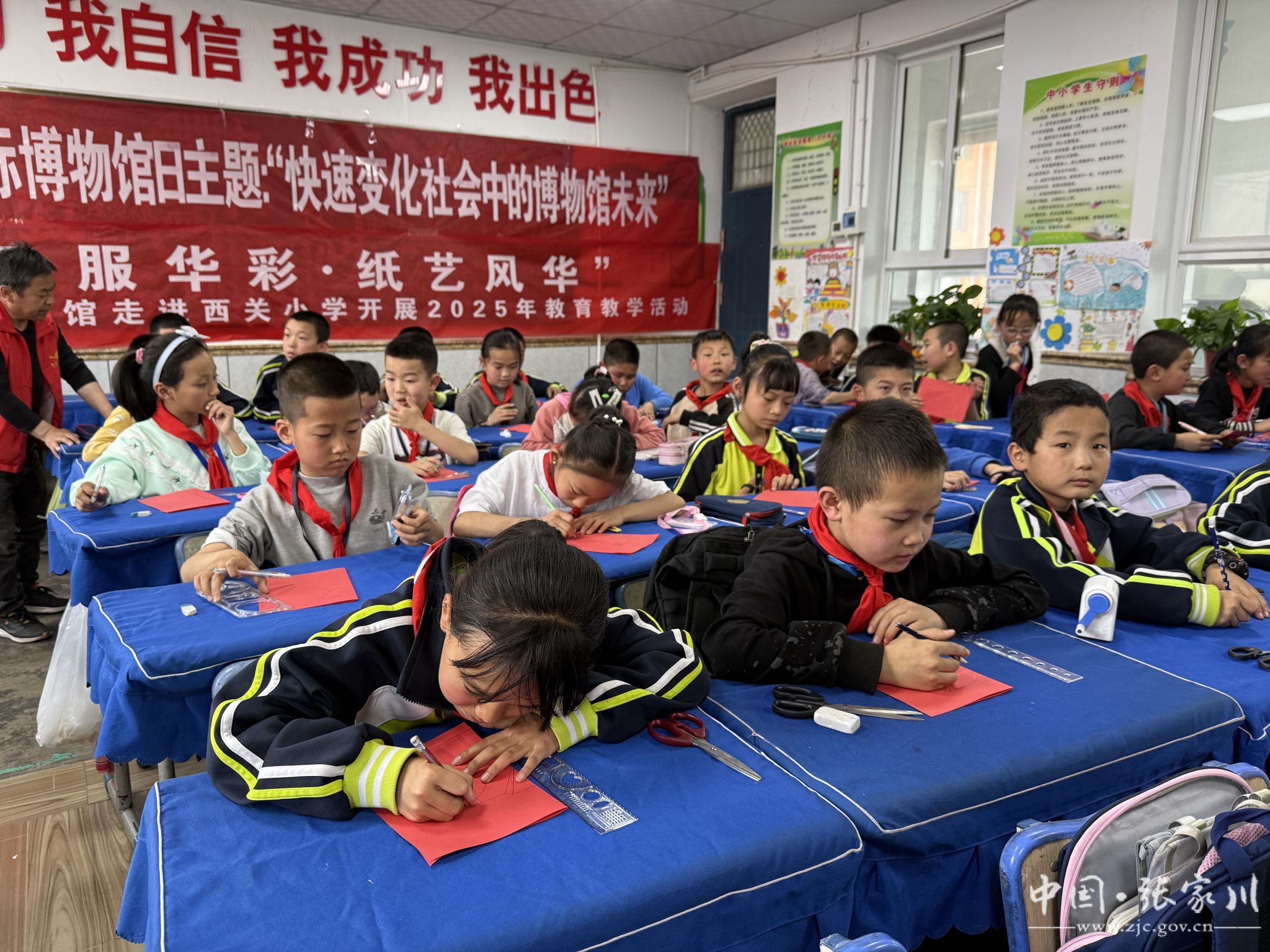 为迎接第49个“5·18国际博物馆日”,深化青少年传统文化教育,5月13日,张家川县博物馆走进西关小学开展以“汉服华彩·纸艺风华”为主题的教育教学活动,通过流动展览、文化讲座、剪纸体验三大板块,带领师生沉浸式感受历史与艺术的交融之美。