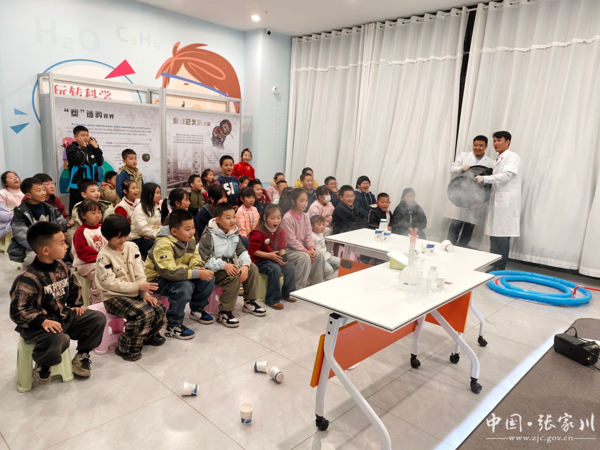 奇趣实验秀 嗨翻科学夜。晚上19时10分,活动在万众期待中准时拉开帷幕。首先登场的是备受瞩目的 “科创奇趣秀 实验嗨翻天” 科学实验秀环节。科技馆的辅导员们化身“科学魔法师”,为现场的大小朋友们带来了一场视觉与知识的双重盛宴。“砰!”随着一声沉闷而有力的声响,一个肉眼可见的白色“烟圈”呼啸而出,瞬间引爆了现场的气氛。随后,令人惊叹的“大象的牙膏”实验更是将活动推向了高潮,大量色彩斑斓的泡沫如同喷涌而出的牙膏,迅速冲出容器,引得孩子们阵阵惊呼。最受小朋友们喜爱的当属“泡泡套人”实验,巨大的泡泡膜将参与者整个笼罩其中,让大家在惊叹之余,也近距离感受到了表面张力等科学原理的神奇魅力。每一个科学实验都像是一颗种子,在孩子们心中播下探索科学奥秘的萌芽。