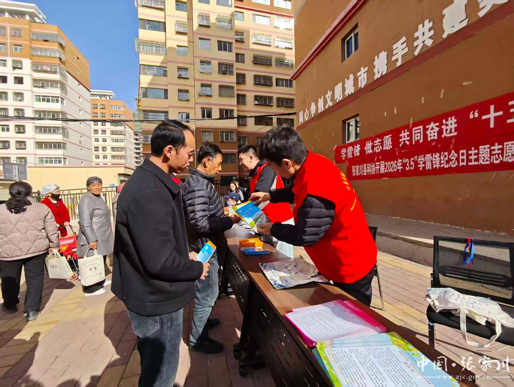 三月春风暖,志愿正当时。为弘扬新时代雷锋精神,普及科学知识,助力乡村振兴,3月5日,张家川县科协、科技馆组织科技志愿者服务队,在县东城社区开展2026年“3·5”学雷锋纪念日启动仪式,活动现场,内容丰富、形式多样的科普宣传品深受居民喜爱,志愿者们现场发放了《健康养生知识手册》《居民科普知识读本》等科普书籍600余本(册),科普宣传袋、纸杯等科普宣传品800余件。