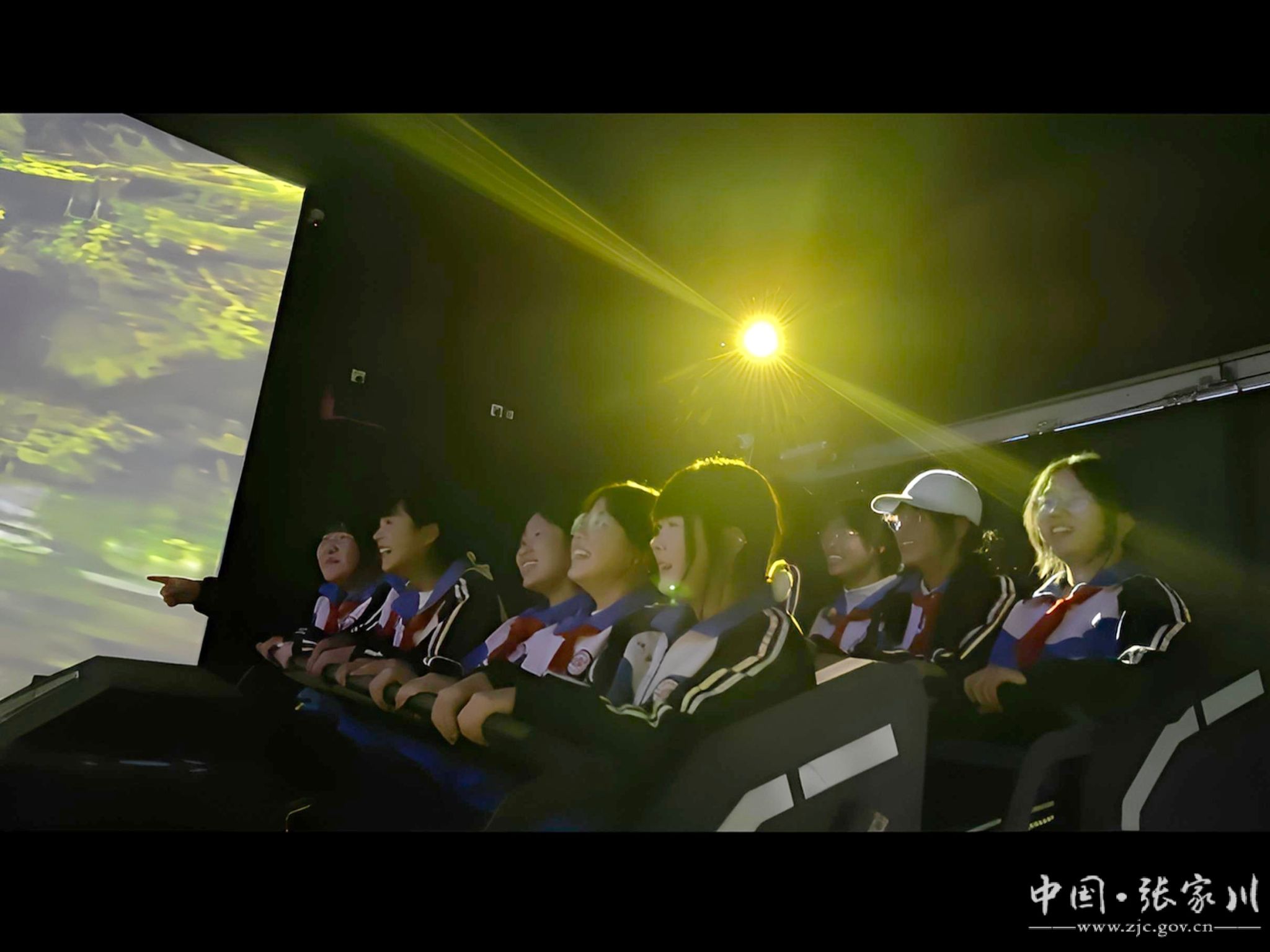 在科技馆最受欢迎的区域——裸眼9D轨道影院,同学们体验了一场惊险刺激的“丛林冒险”。无需佩戴任何设备,逼真的画面、动感的轨道座椅与环绕音效相互配合,让人仿佛置身于原始森林之中,时而俯冲、时而飞跃,尖叫声与欢呼声此起彼伏。这场沉浸式的前沿科技体验,不仅点燃了孩子们的好奇心,也让他们真切感受到科技带来的无限可能。