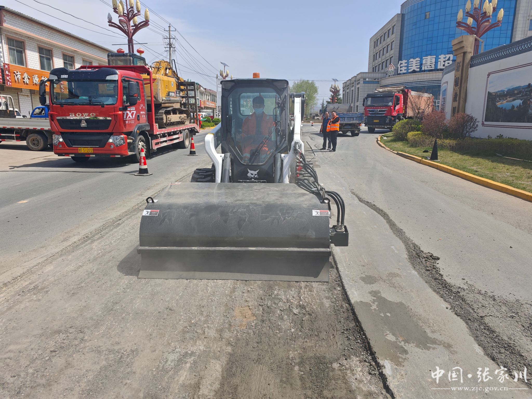 四月红堡,柳色初新。G566线上,橘红色的滑移式装载机挥舞铁臂,伴随着铣刨机轰鸣,奏响了油路修补的奋进乐章。规范的作业区内,安全稚围挡整齐列队,交通员手中的指挥旗迎风起舞。在这热火朝天的施工现场,天水公路事业发展中心张家川公路段的油路修补工作队党员胸前的党徽与油路修补机械的金属光泽交相辉映,格外耀眼。