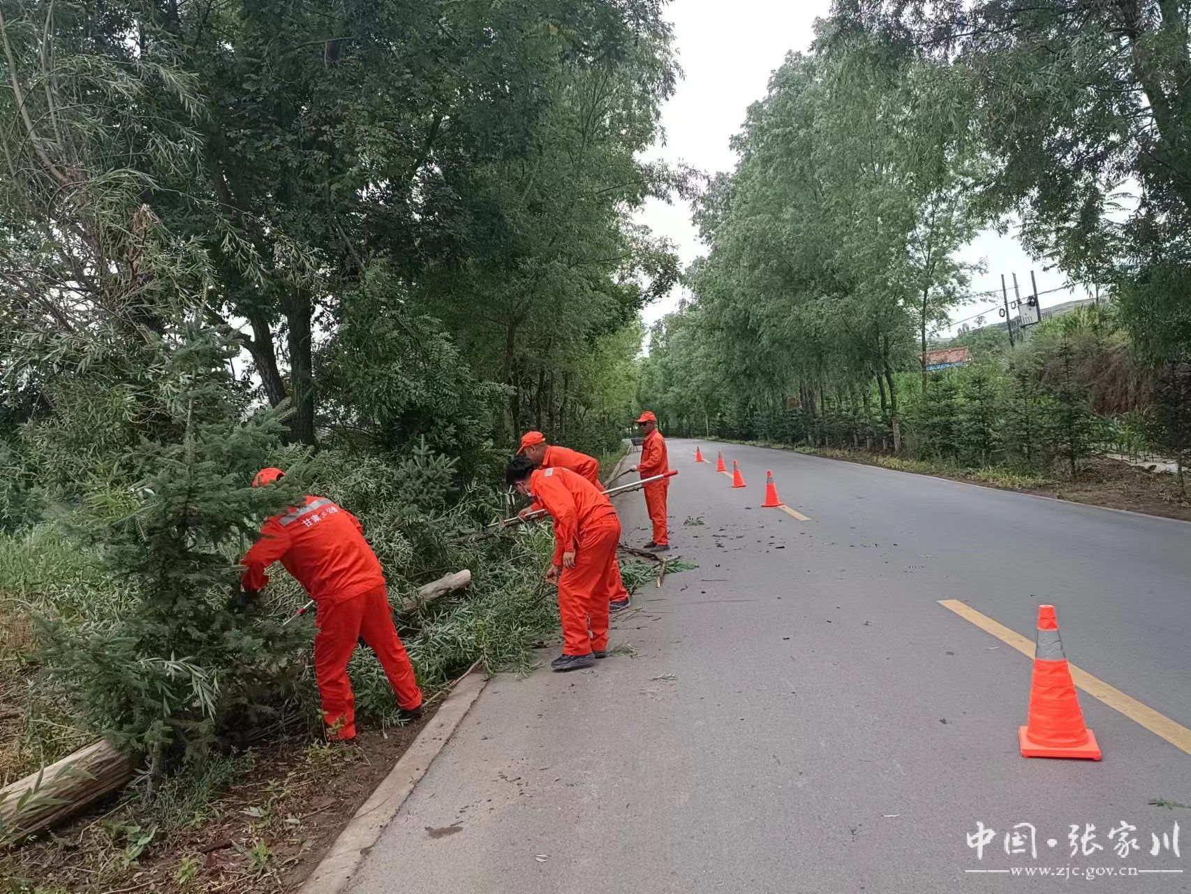 接到巡查人员报告后,张家川县公路段立即启动应急预案,第一时间组织机关和养护站24名工作人员赶赴现场,布设安全警示标志和锥桶,引导过往车辆安全通行,并冒雨对倒伏在路面上影响通行安全的树木进行清理,对路面的杂物进行清扫,全力保障汛期辖养路段安全畅通。7月19日,工作人员持续对辖养的国省干线上降雨形成的垃圾、杂物全面进行清扫,对影响交通安全的树木进行清理、修剪,对淤塞的边沟、涵洞等进行清理疏通,确保车辆安全通行。