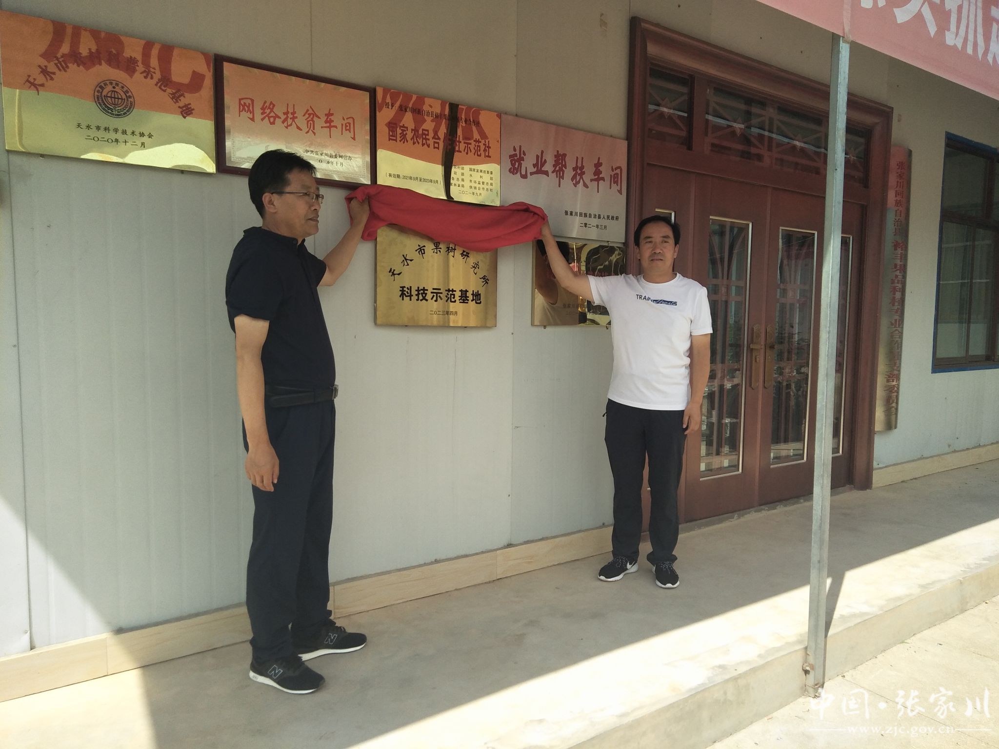 8月1日,天水市果树研究负责人前来张家川县为张家川镇刘家现代果业产业园、马河裕丰果品种植专业合作社两个设施大樱桃示范园,举行科技示范基地挂牌仪式。