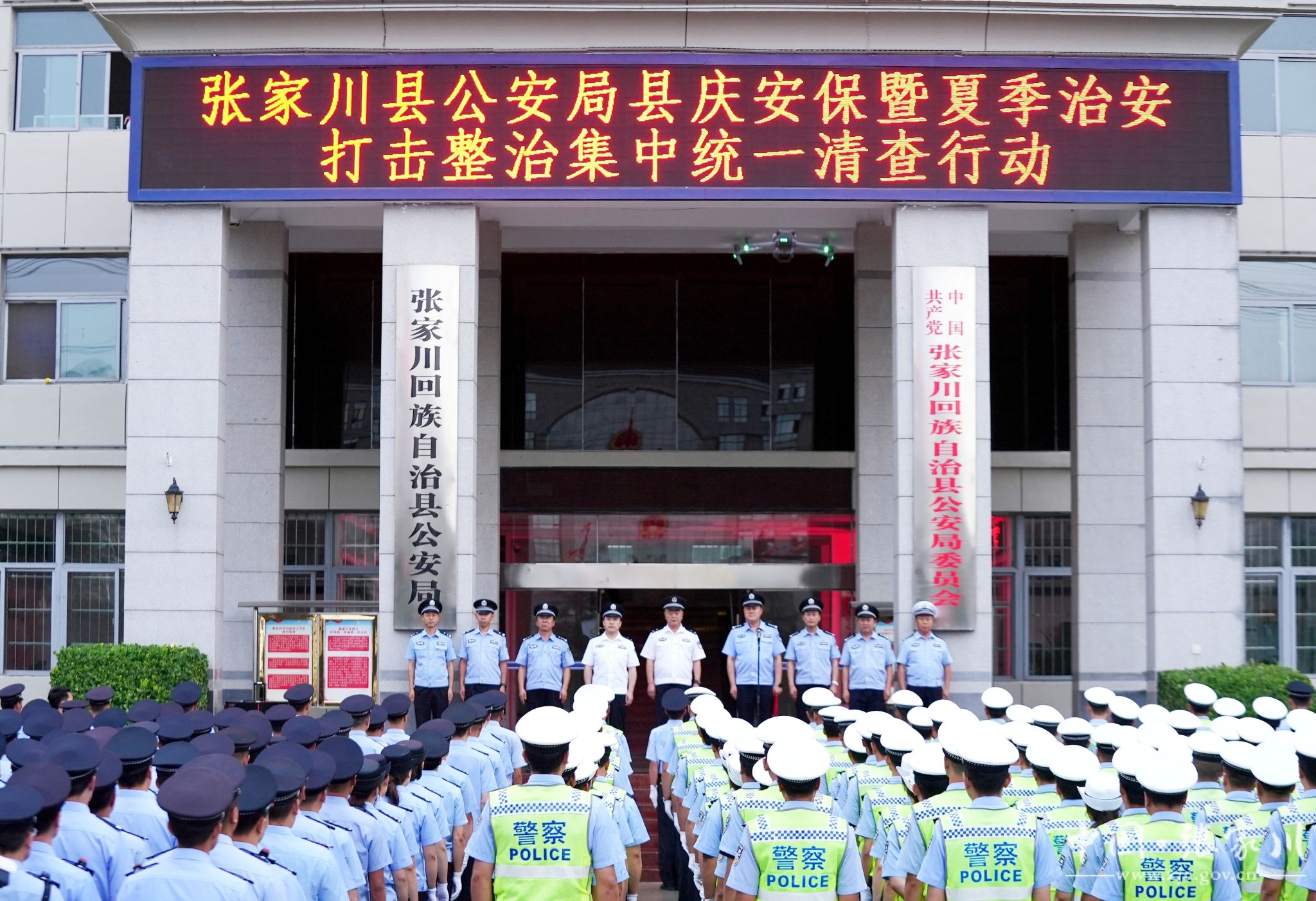 为深入推进公安机关夏季治安打击整治行动,加大社会面整体防控力度,强力打击查处现行违法犯罪活动,有效防范清除安全风险隐患,全力为70周年县庆营造安全稳定和谐的社会环境。近日,张家川县公安局举行夏夜治安巡查宣防第三次集中统一行动暨县庆安保治安清查行动启动仪式。