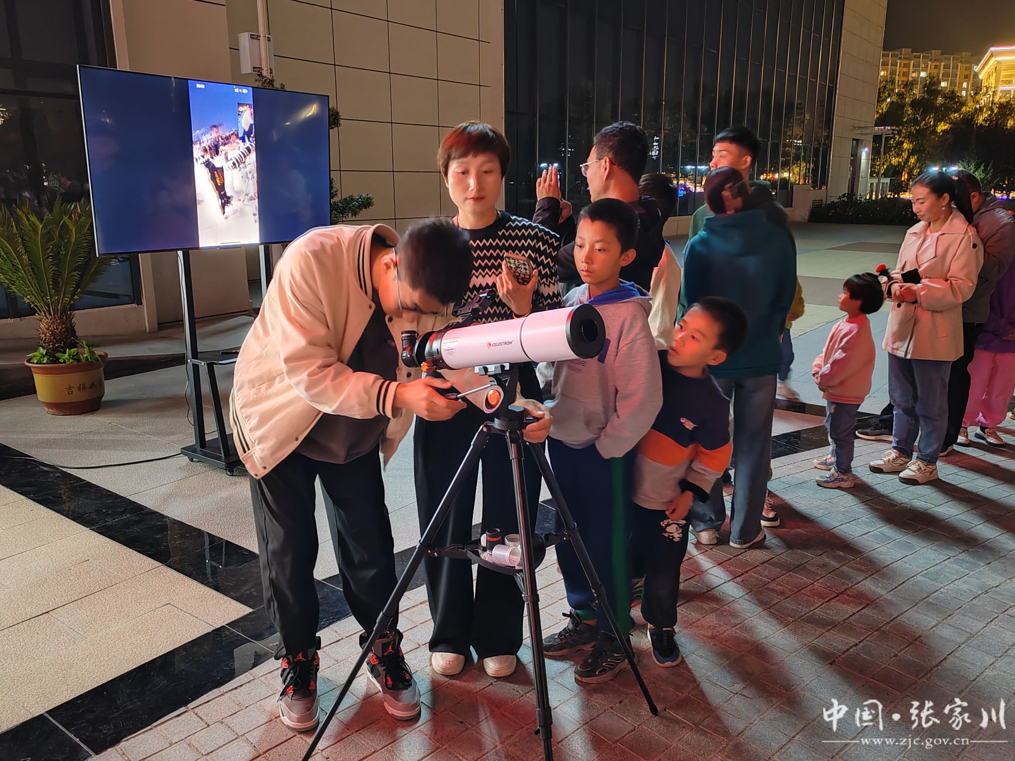 9月29日,中秋节当晚8点,来自天津市滨海新区科技馆的科学老师,通过现场视频连线方式,向广大群众科普月球知识、月相变化规律、月相形成原因等内容,科学老师现场指导观众和广大青少年利用天文望远镜观察月球表面,让观众们观赏到了张家川与天津两地不同经度不同纬度,同一时间段的同一轮圆月,令两地观众心连心,跨越距离的友谊升温。活动现场气氛高涨,让广大观众在轻松愉快的氛围中感受中秋传统文化习俗和无限科学魅力,收获别样的快乐。