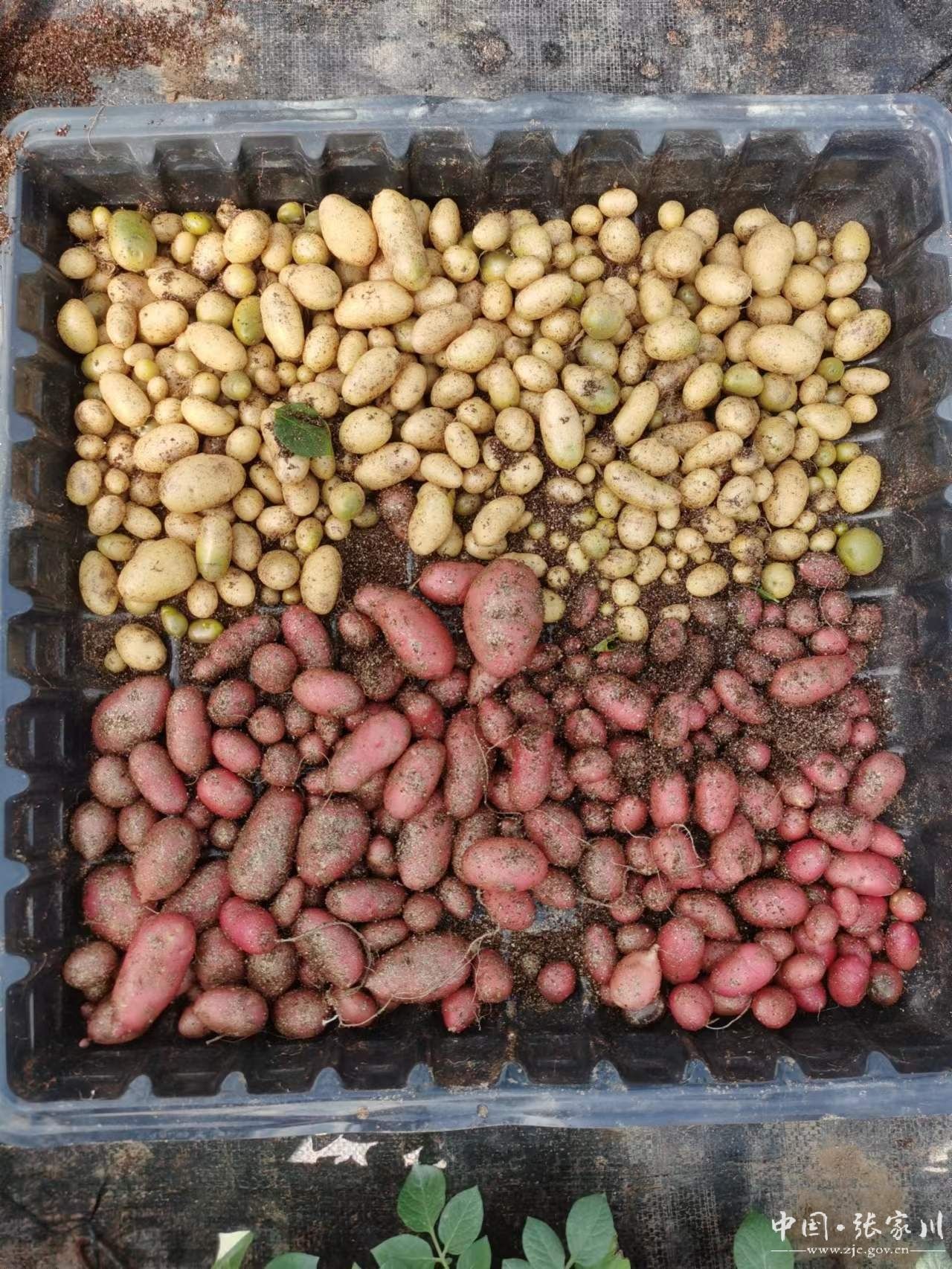 自实施部省联动马铃薯提质增效关键技术集成与示范项目以来,在国家乡村振兴重点帮扶县马铃薯产业组的指导下,2023年,县农业农村局引进定西农夫薯园脱毒种薯快繁公司开展脱毒种薯繁育技术试验示范,在张川镇刘家村网室内栽植马铃薯脱毒苗,繁育脱毒马铃薯原原种。该示范项目引进了青薯9号、希森6号、v7、陇薯7号、冀张薯12号5个品种,7月初完成棚内栽植,共栽植脱毒苗11棚(每棚400平方米)96.5万株。5个月来,通过脱毒种薯繁育一系列技术措施的落实,11月上旬脱毒马铃薯原原种喜获丰收。经测产,每棚产量为15万粒左右,总产达165万粒以上。