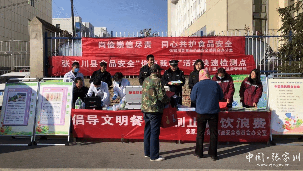 采取悬挂标语、发放宣传资料、设置展板、解答咨询等形式全方位、广泛宣传法律法规,多角度向群众宣传文明节约的用餐新风尚与食品安全科普知识,耐心讲解饮食卫生误区、科学判别伪劣食品、食物中毒常见原因及防范等相关常识。同时,设立张家川县食品安全“你点我检”活动快速检测点,深入农贸市场、超市、餐饮店、校园现场检测群众普遍关心的风险较高的蔬菜、水果等农产品,展示食品快检技术,现场答疑解惑,免费为群众提供快检服务。