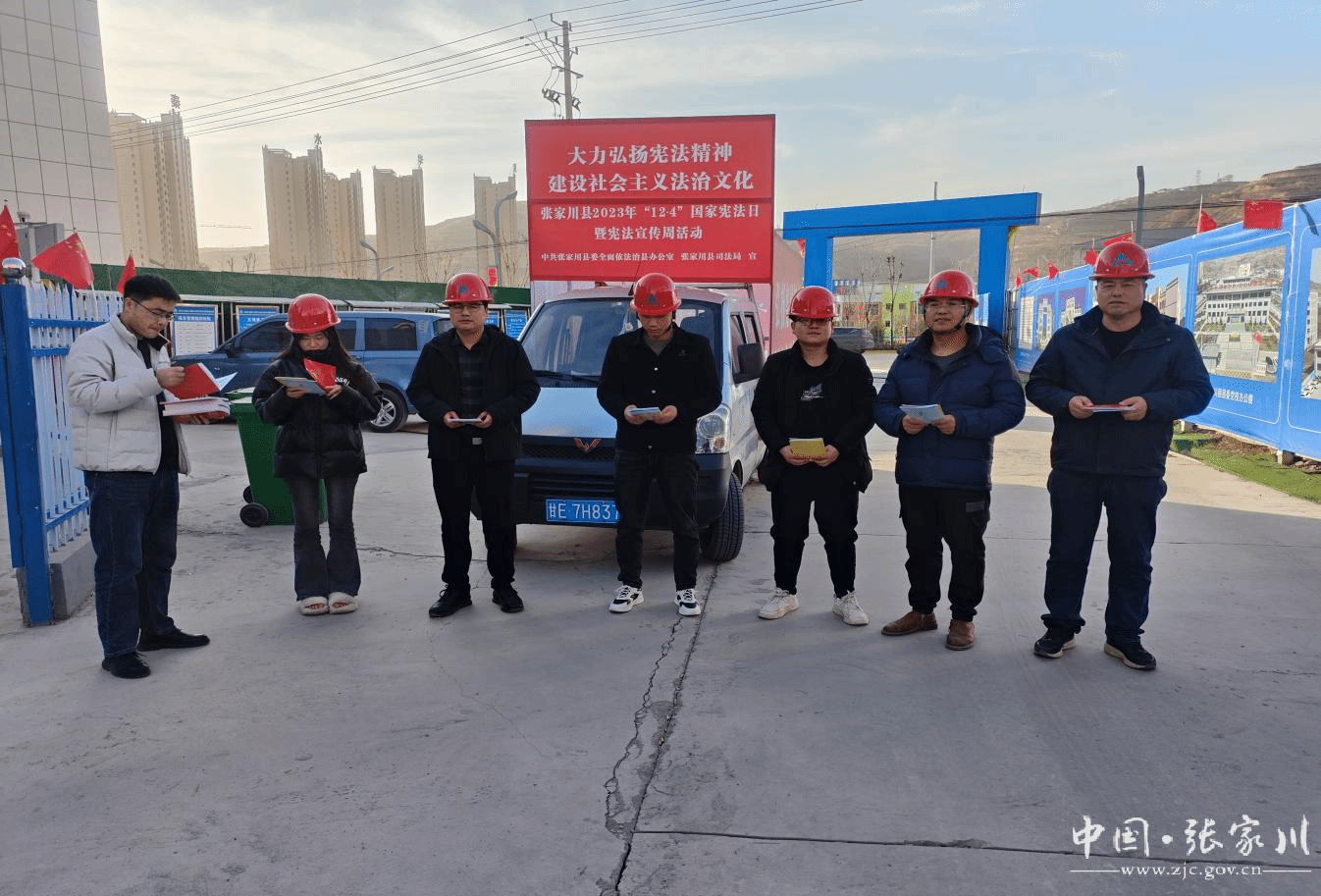 在张家川县二建公司,律师围绕什么是宪法、宪法的特征、宪法的性质、宪法的发展历程等几个方面,为企业管理人员和职工代表进行了细致全面的讲解,引导大家自觉学习宪法、尊崇宪法,维护宪法权威。并通过座谈交流,对企业进行“法治体检”,了解企业生产运营情况、发展思路以及存在的困难,详细掌握企业法律顾问履职、业务合同签订、融资贷款、用工保障等方面的情况,现场解答企业在生产经营中遇到的情况,帮助企业分析研判经营中的法律风险,依法维护企业合法权益。同时工作人员深入工地,大力宣传法律法规。