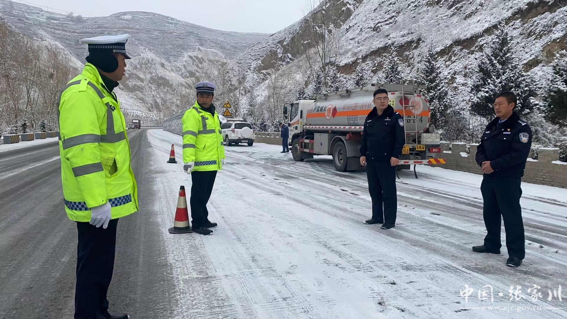 连日来,张家川县普降大雪,受降雪天气影响,路面结冰湿滑,给道路通行带来极大不便。为积极应对降雪天气带来的不利影响,保障道路畅通及群众出行安全,张家川县公安局交警大队联合乡镇派出所,全警上路,强化雨雪天交通安全管控,全力保障春运后期雨雪天气道路交通安全。