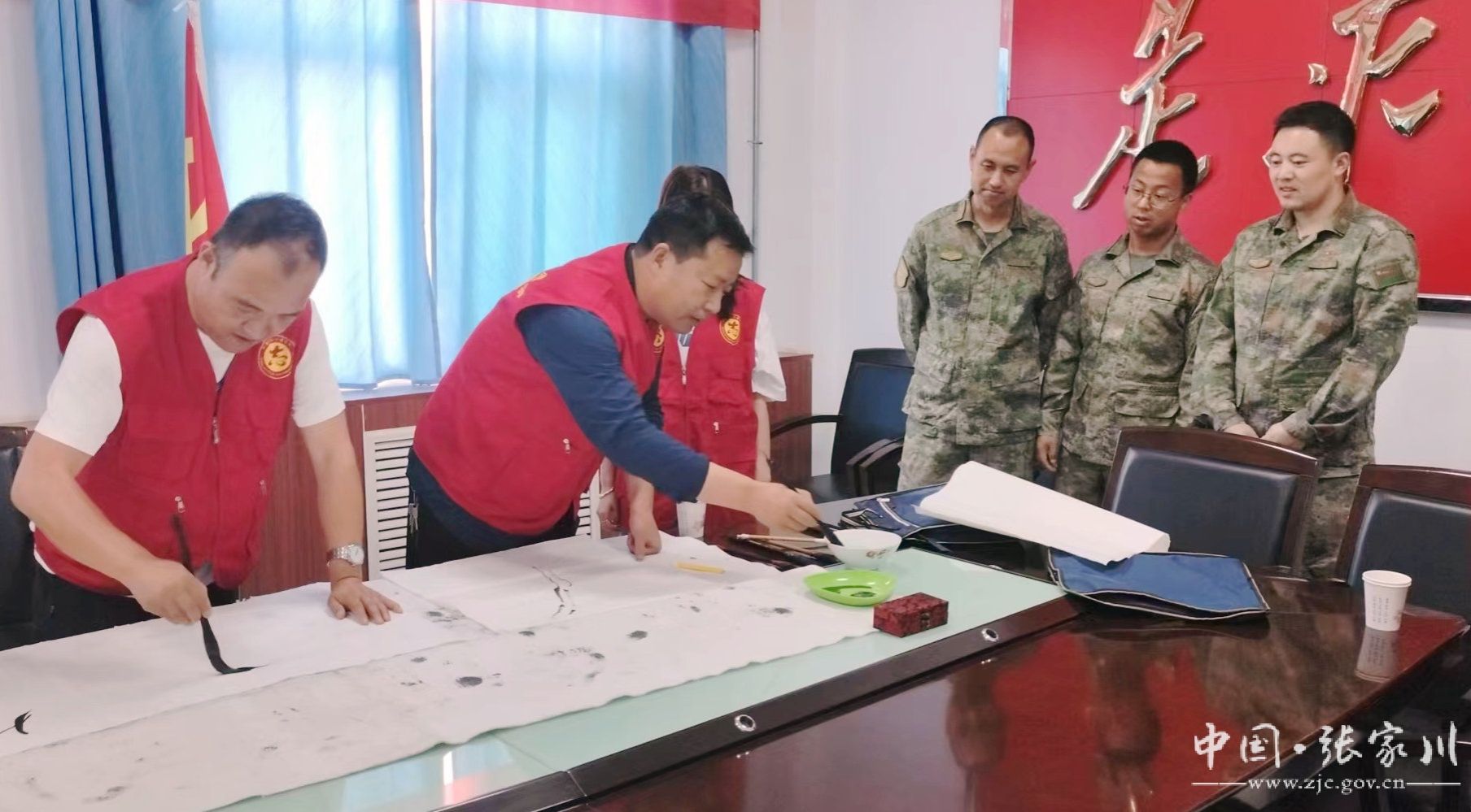 在八一建军节来临之际,7月28日,张家川县“迎县庆,庆八一”送书画进军营文明实践活动在张家川县人民武装部开展。县新时代文明实践中心办公室、县文化馆、县文艺志愿者参加。他们用一幅幅书画作品表达军爱民、民拥军的军民鱼水情。