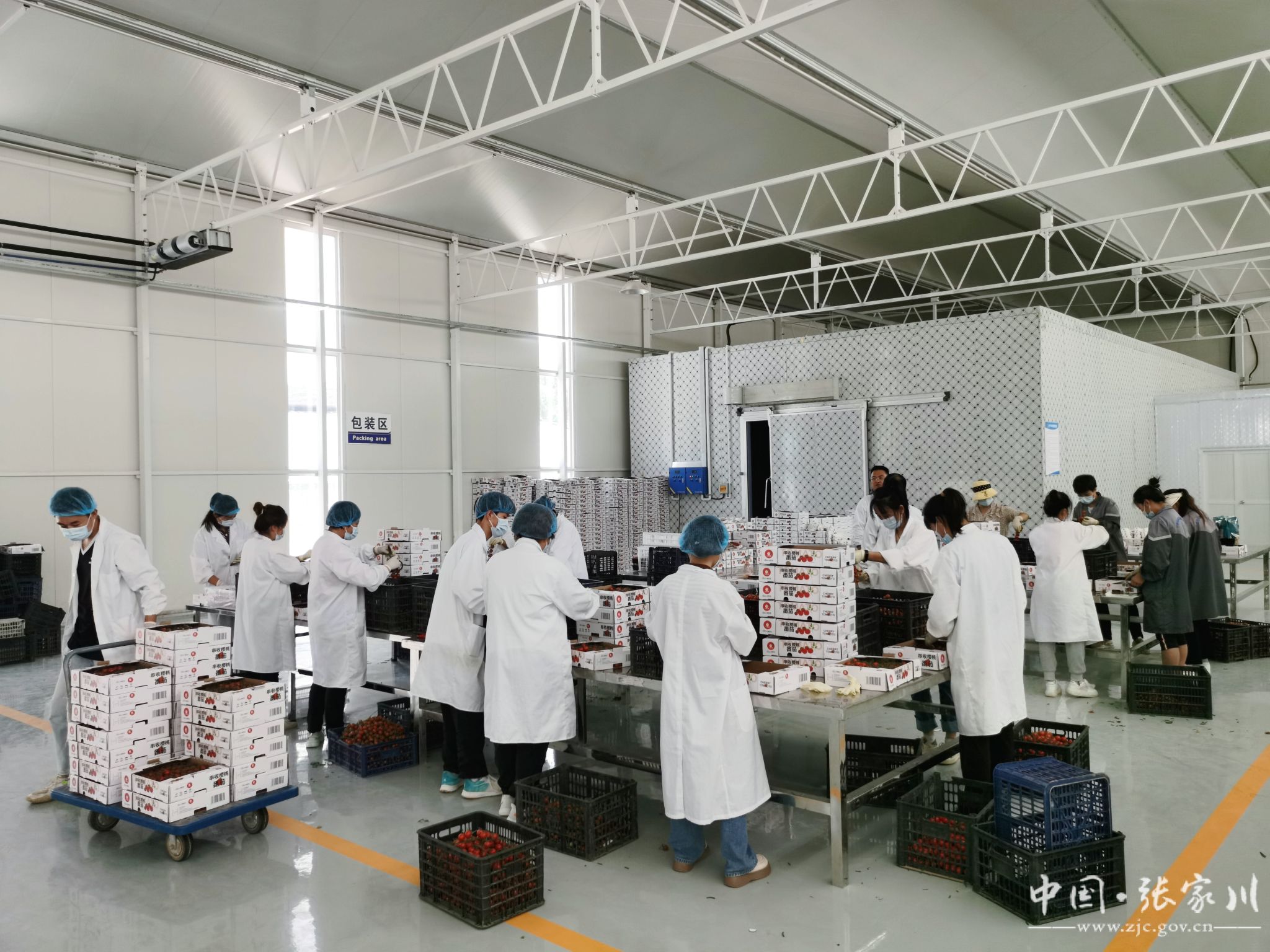 “张家川县中部蔬菜产业园区串收樱桃番茄采取以销定产、以销带产的方式,与上海某企业签订销售合同,首批1200件即将发往上海,现正组织工人进行分拣,包装,装车。”张家川县中部蔬菜产业园区负责人杨俊峰告诉记者。