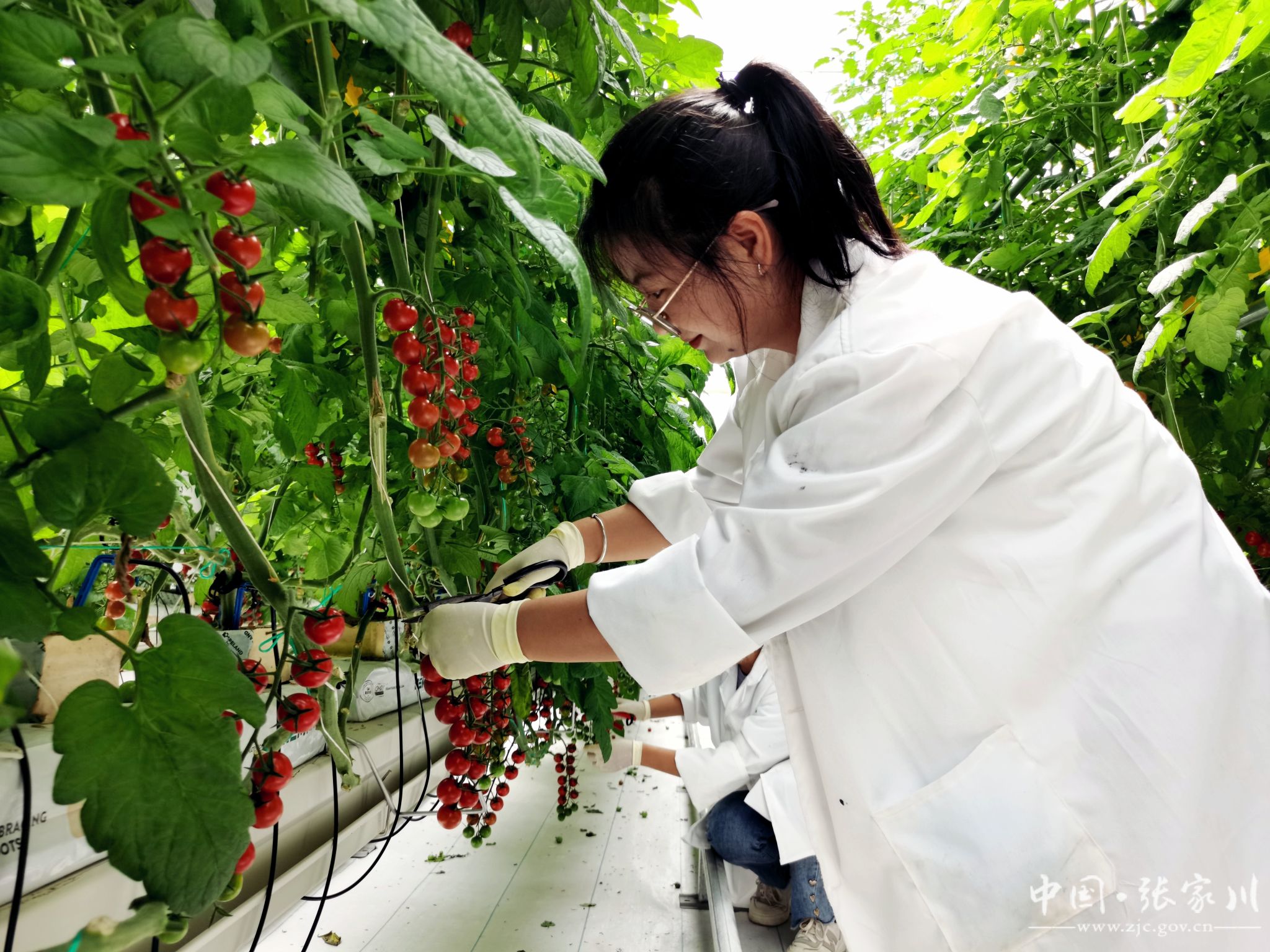 据了解,与传统的种植方法不同,这里的番茄采用无土栽培。小小的番茄苗被置于栽培槽中,用绳子牵引着往上长,通过对环境控制系统、灌溉系统等的综合运用,精准调控温室内的温、光、水、气、肥,同时采用了无土栽培的技术,全过程实现绿色无污染,使得番茄生长在一个最佳环境中,产出的番茄鲜甜多汁,口感和质量都非常高。