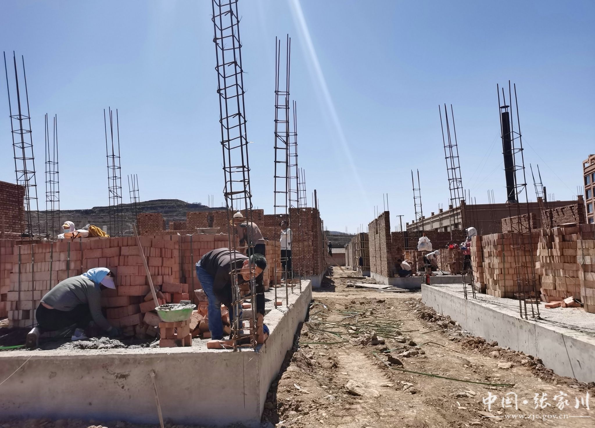 人勤春来早,奋进正当时。近日,记者来到张家川县恭门镇灵台村2024年生态及地质灾害避险搬迁项目现场看到,搅拌车、渣土车、挖掘机等工程车辆机声轰鸣、车辆来回穿梭有序作业,建筑工人们头戴安全帽砌砖筑墙,一幅抢工期、抓进度的繁忙施工景象。