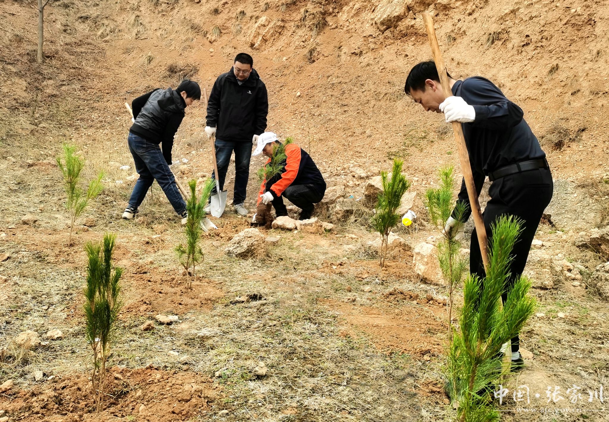 最美人间四月天,不负春光添新绿。趁着近期春暖花开、万物萌发的好天气,张家川县组织党员干部与广大群众全面开展国土绿化工作。在每一个绿化点,大家干劲十足、热火朝天,一棵棵、一排排新栽的树苗迎风挺立,登高望远,县城、乡村,田间、山林,处处释放着春天的浓郁气息。