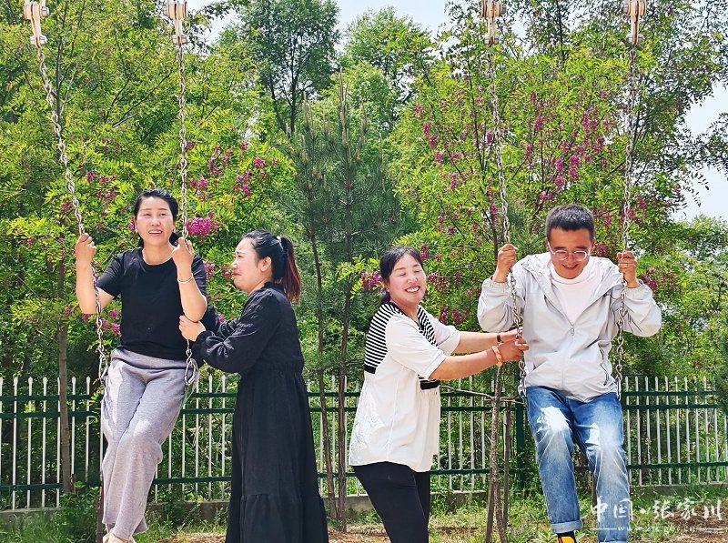在村文化广场,紫槐花开的正旺。凉亭里驻村干部正在帮村上的大爷养老认证,三三两两的群众有说有笑话家常,越荡越高的秋千似灵台村群众的生活,节节高,一幅村美人富的和美画卷正徐徐展开。