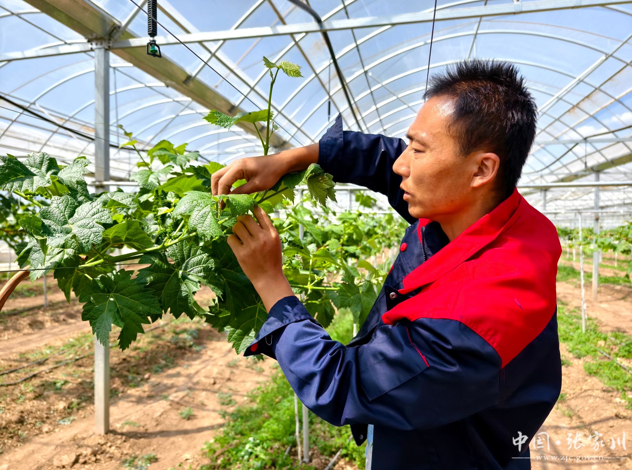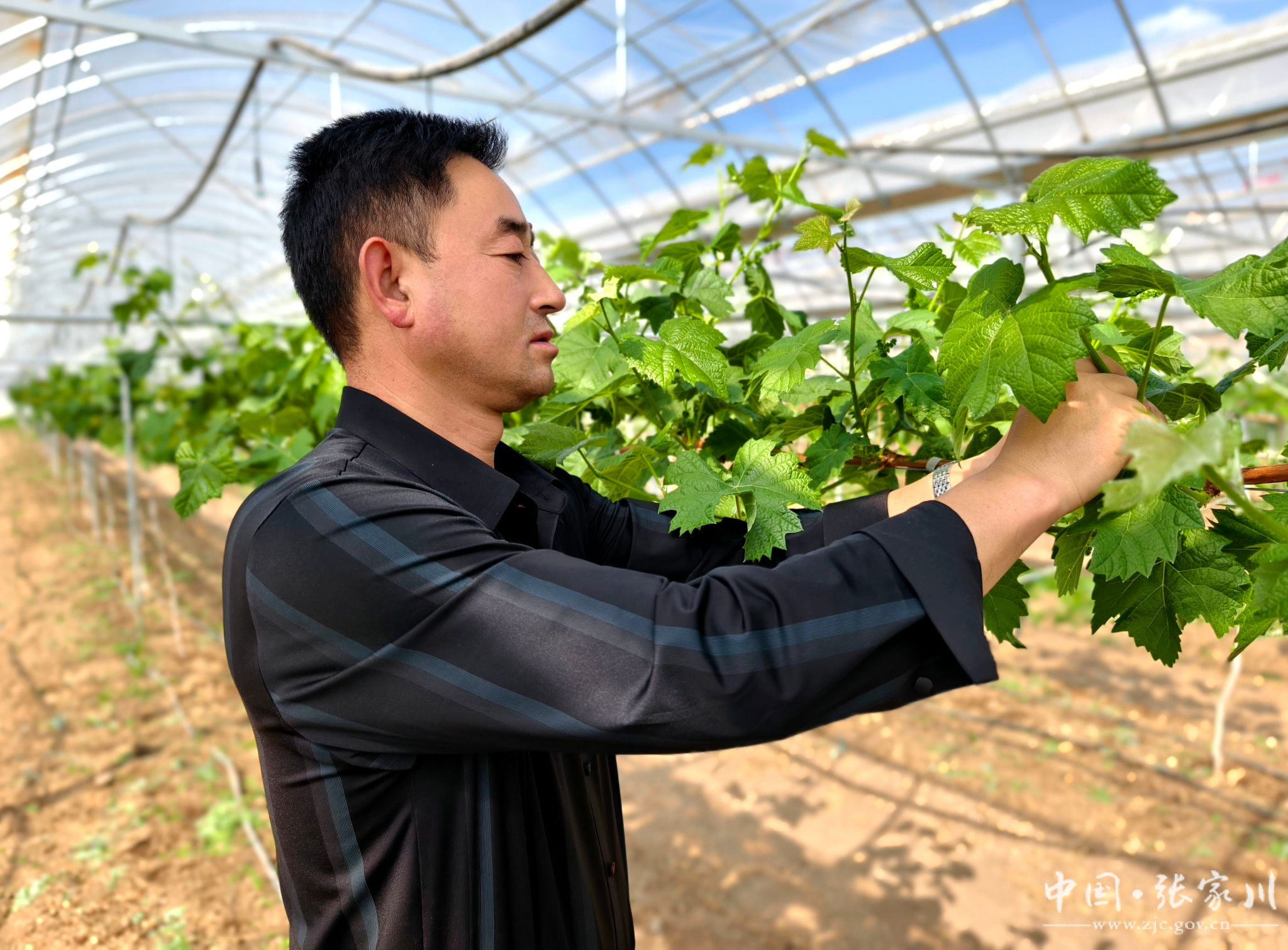 眼下,农作物进入迅速生长期,也是田间管理的关键时期。走进坐落在张家川县川王镇马达村的阳光玫瑰葡萄园,一排排整齐的大棚在阳光的照耀下熠熠生辉。走进大棚,满目翠绿,一串串葡萄颗粒饱满,长势喜人。“产业工人”正忙着进行葡萄梢枝绑蔓、打副梢等“精细活”管理,为丰产增收打下基础。