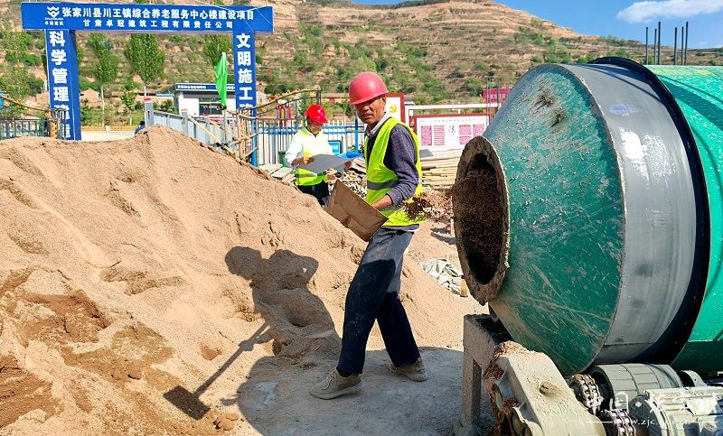 近日,记者在川王镇综合养老服务中心项目建设现场看到,施工工人们正在加紧施工,搅拌机正在搅拌水泥,现场一片热火朝天的景象。