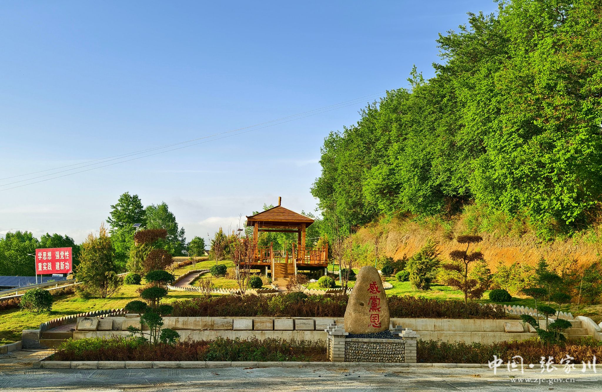从马原村一路到新庄村,道路两旁的紫花槐开得正艳,一串串玛瑙般的花朵挂在枝头,一阵阵芬芳随风扑鼻而来。沿路社会主义核心价值观主题石星罗棋布,虞美人园、格桑花园、牡丹园等特色花园郁郁葱葱。