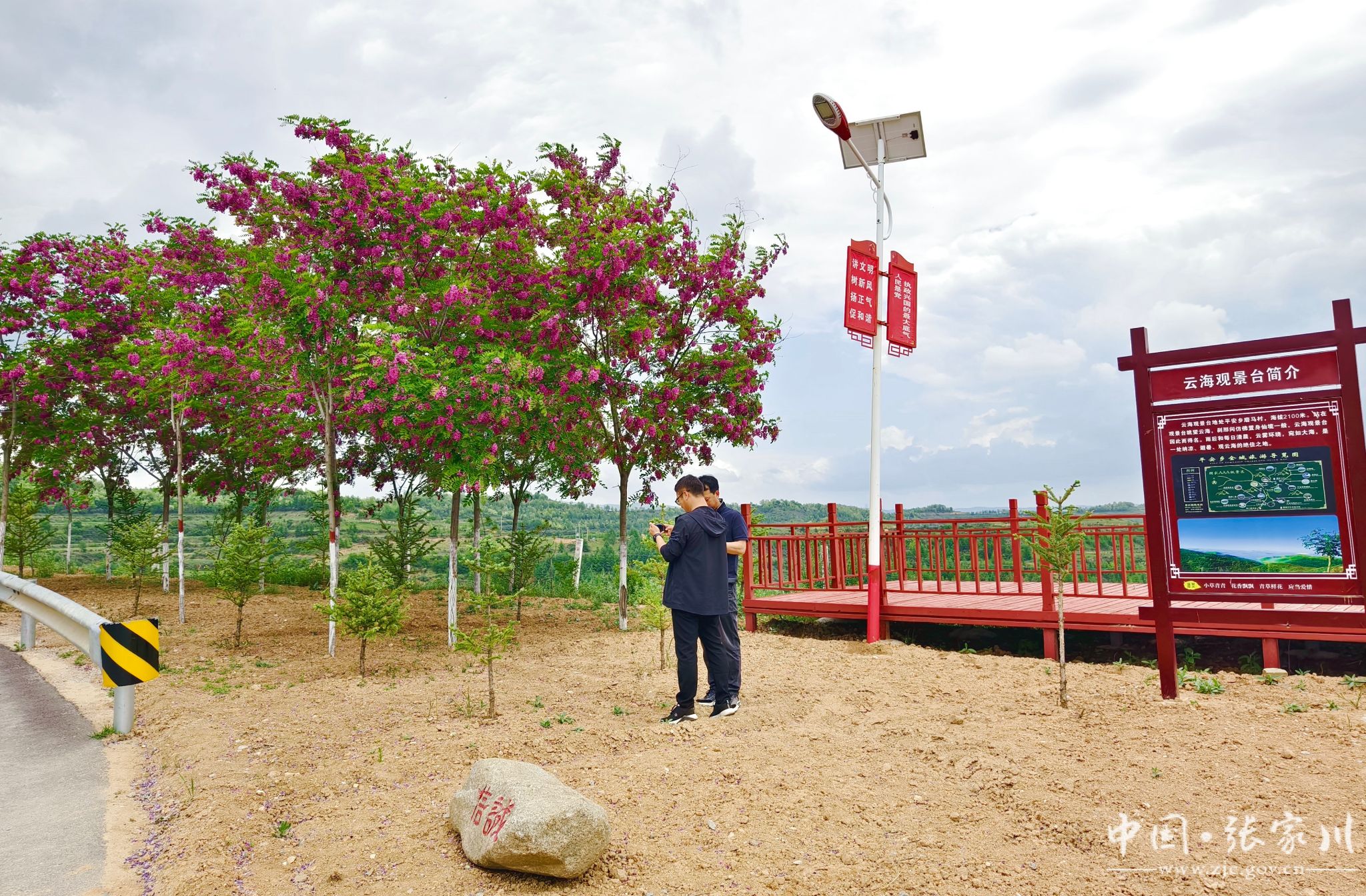 漫步在马原村,道路两侧鲜花盛开、绿树成荫,蓝天白云下月季花、槐花争相绽放,伴着和煦的阳光,尽是“暖日迟迟花袅袅”的祥和之景。准备去平安草原游玩的游客们停车在马原村拍照打卡,游客李有生说:“沿路的风景太美了,随处有停车场、有小花园,道路两旁的香花槐开得太美了,进入这里空气中弥漫着浓浓的槐花香味,人在路上如处画中,感觉很好。”