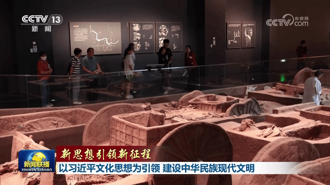 央视网消息(新闻联播):“对历史最好的继承就是创造新的历史,对人类文明最大的礼敬就是创造人类文明新形态。”党的十八大以来,习近平总书记坚持把文化建设摆在治国理政的突出位置,坚持把马克思主义基本原理同中国具体实际相结合、同中华优秀传统文化相结合,鲜明提出一系列新思想新观点新论断,形成习近平文化思想,标志着我们党对中国特色社会主义文化建设规律的认识达到了新高度,表明我们党的历史自信、文化自信达到了新高度,把中华文化发展推向新阶段,为中华民族现代文明建设提供科学思想和行动指南。