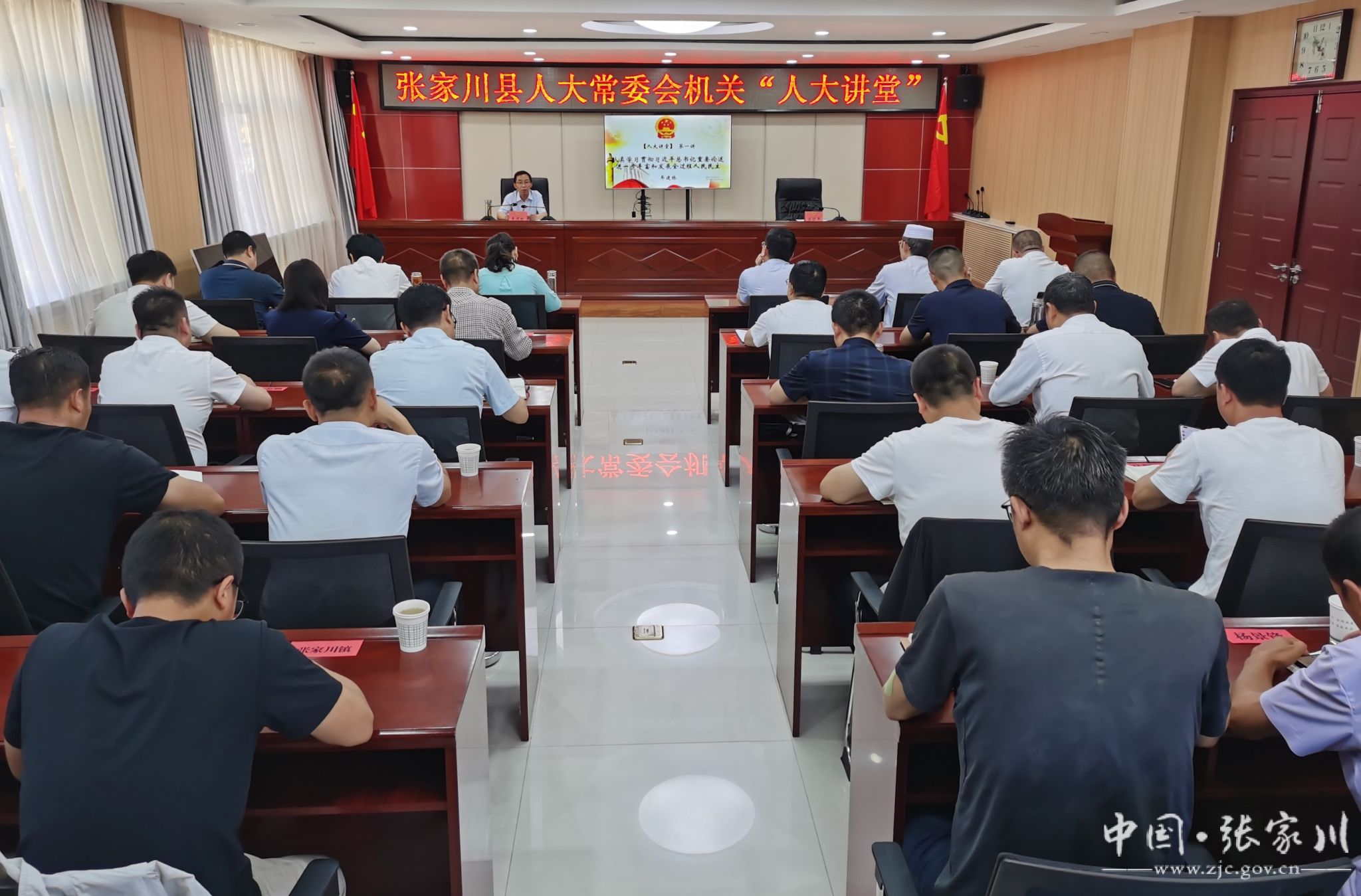 7月18日,张家川县人大常委会机关“人大讲堂”第一期开讲。县人大常委会党组书记、主任牟建林作了题为《认真学习贯彻习近平总书记重要论述 进一步丰富和发展全过程人民民主》的专题辅导。