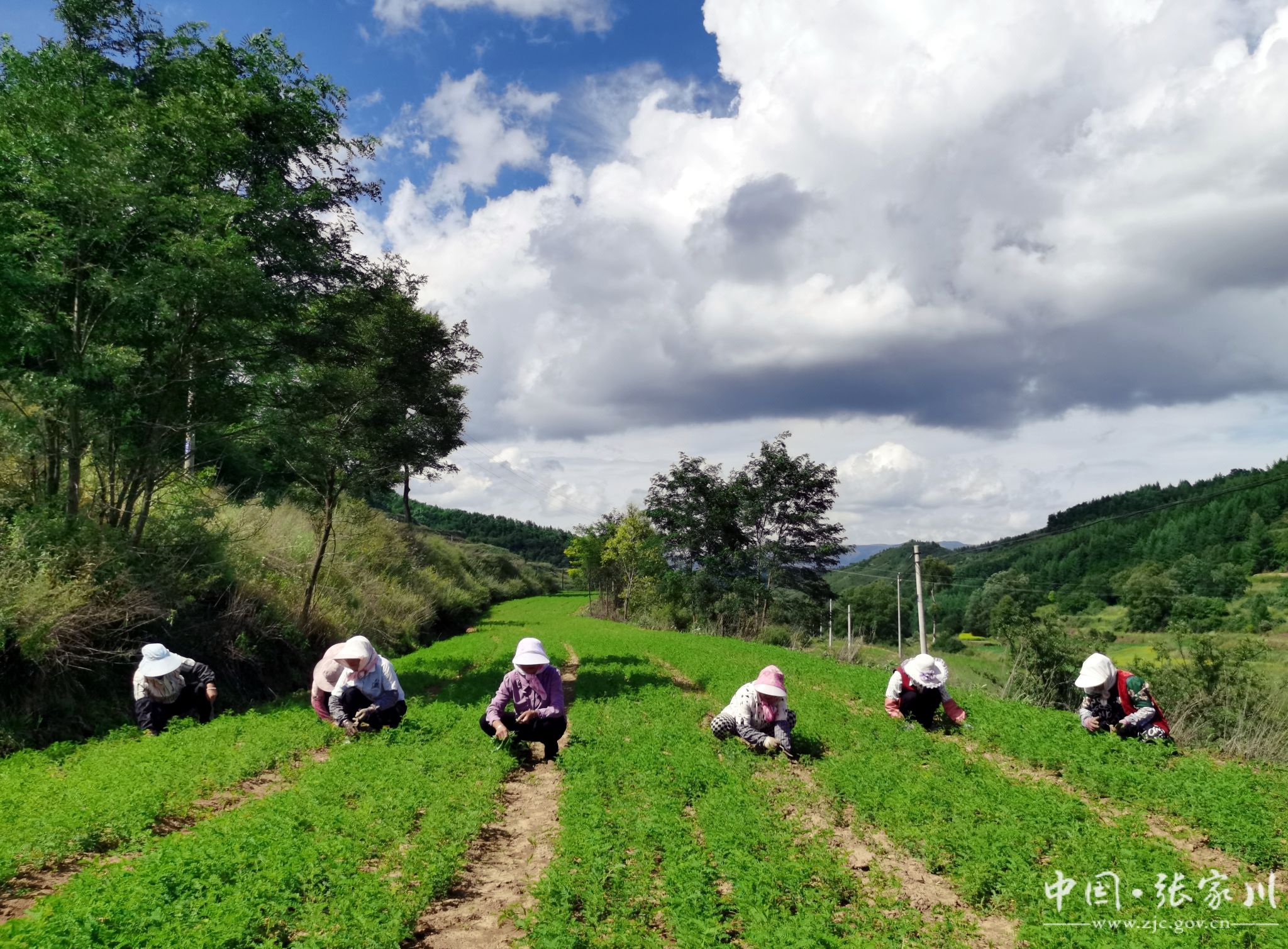 在恭门镇张窑村、团结村的千亩中药材种植基地,绿油油的药草铺满了田地,放眼望去,满目葱茏,连片的中药材在阳光的沐浴下茁壮成长,预示着又一个喜人的丰收。基地正组织当地七十位村民忙着除草、固土等管护工作。