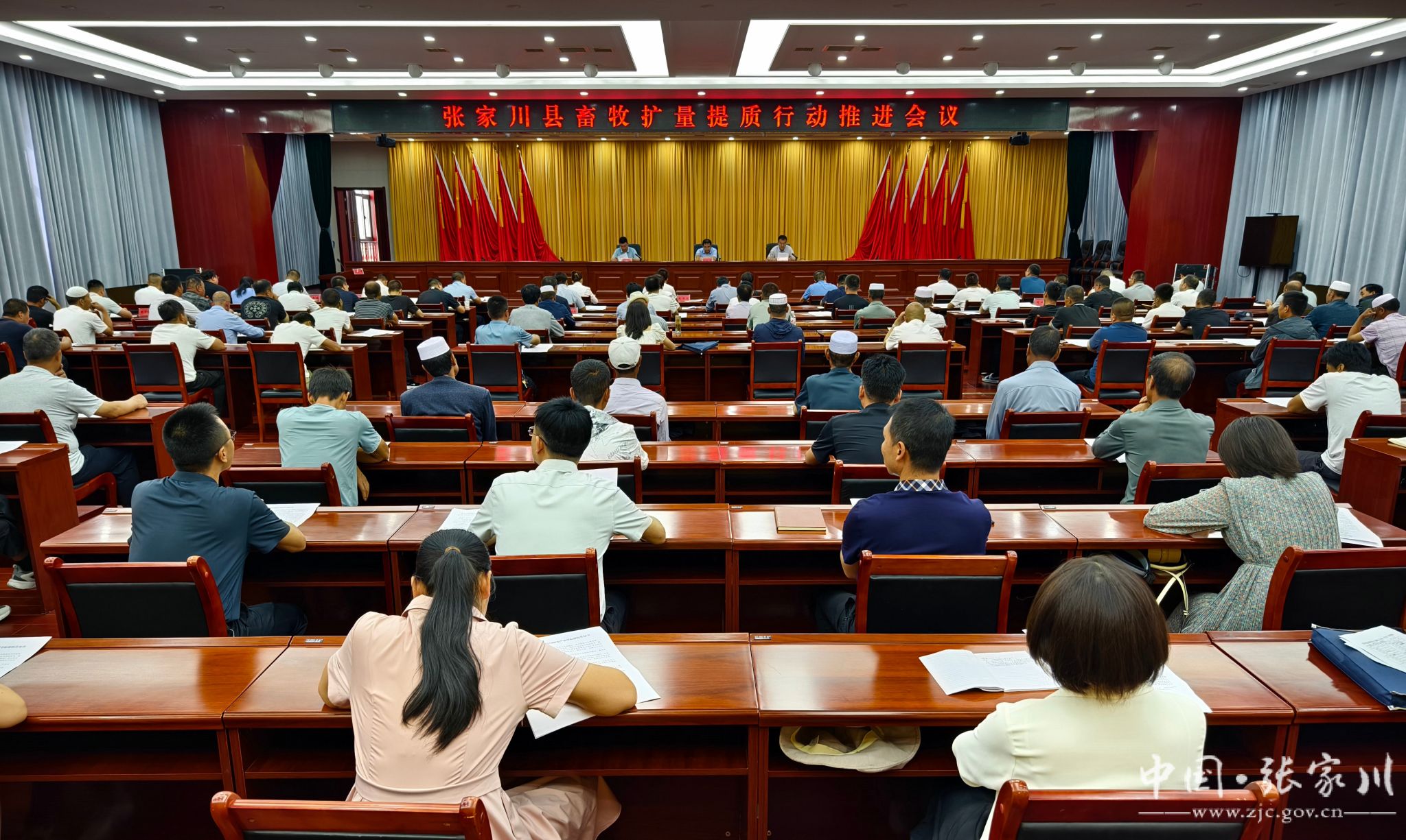 8月6日,张家川县召开畜牧扩量提质行动推进会。会议总结上半年畜牧扩量提质行动推进情况,分析当前畜牧产业发展形势,部署下半年现代饲草产业发展、全产业链建设、动物疫病防控、草原禁牧等重点工作。县委副书记刘二贵,副县长马永平出席会议。