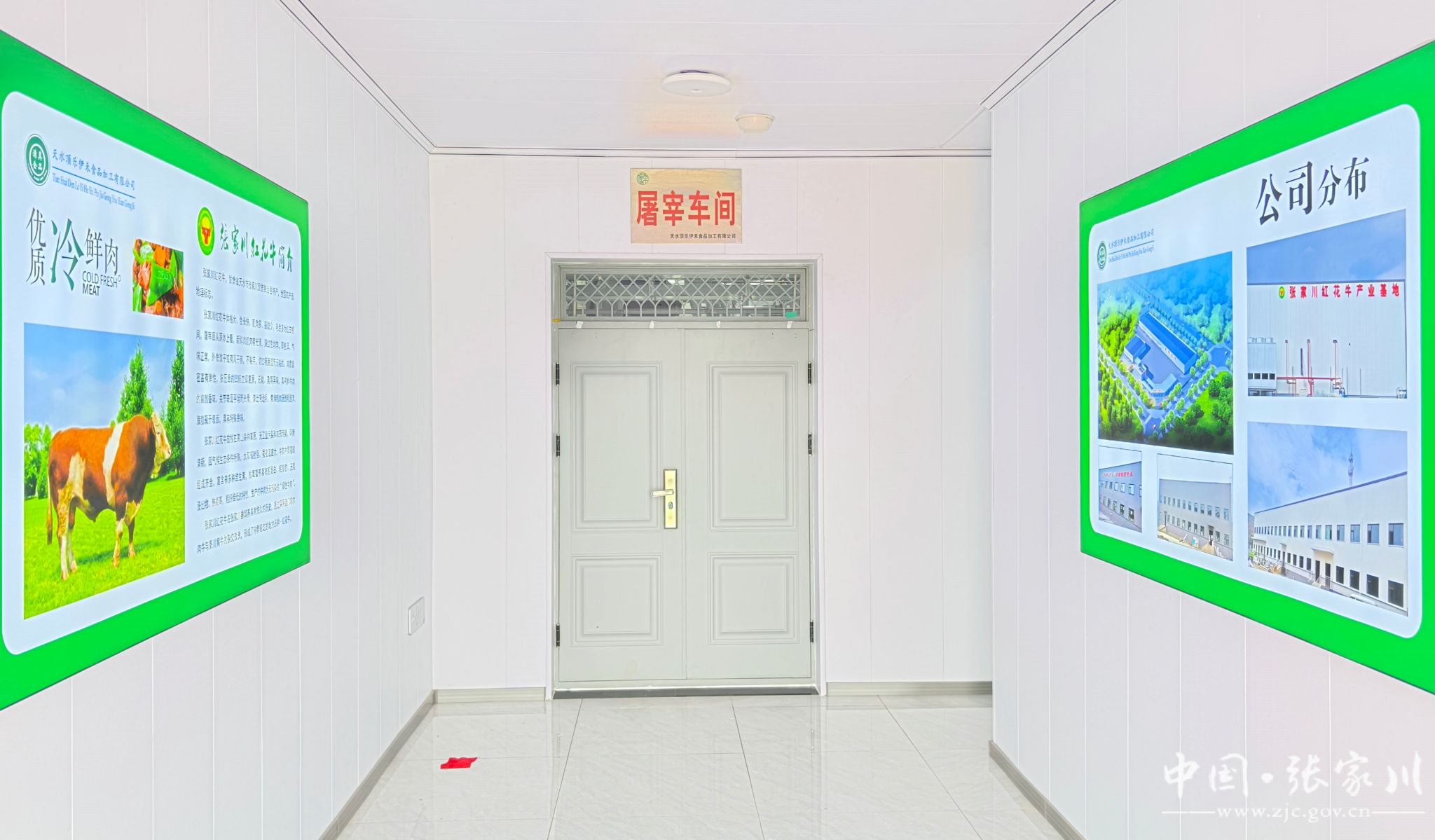 据悉,该项目一期投资5000万元,建有牛羊待宰间1200平方米,牛羊屠宰加工车间4000平方米,分割、包装车间1600平方米,恒温库11000立方米,业务用房4000平方米和附属设施。二期投资6700万元建设熟食加工、体验中心、交易市场、肉牛养殖及有机肥加工板块,形成以专业农户、生产加工企业、冷链物流企业为支撑,集采集、加工、贮藏、批发、配送、检验检测、信息交流等多功能为一体的综合型畜产品冷链体系,该项目引进天水顶乐伊禾食品加工有限公司承建运营。年屠宰量达3万头,羊10万只,极大满足了全县牲畜屠宰需求。公司肉源以张家川县关山腹地培育的国家地标产品“张家川红花牛”为主,公司通过ISO质量体系、环境体系、职业健康安全体系、食品安全体系四大质量体系认证,建有行业自动化高标准的牛羊屠宰生产线各一条,精品分割生产线二条。