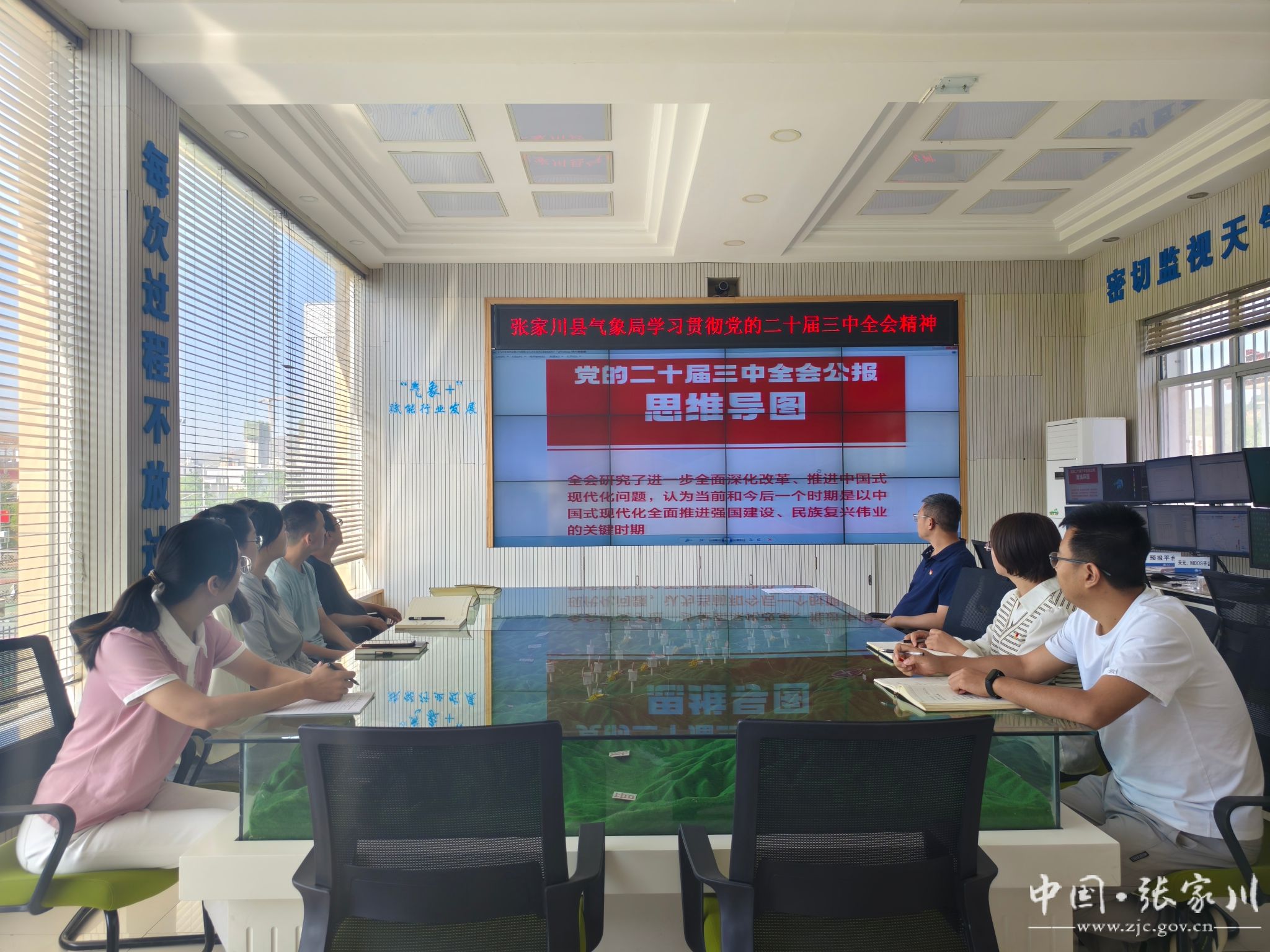 党的二十届三中全会是新时代新征程上推动全面深化改革向广度和深度进军的总动员、总部署,进一步明确了全面深化改革的总目标和重点部署。近日,张家川县气象局结合工作实际,以发挥气象防灾减灾作用为着力点,组织全体党员干部在对标对表中把准改革的方向和重点,推动全会精神入脑入心、走深走实。