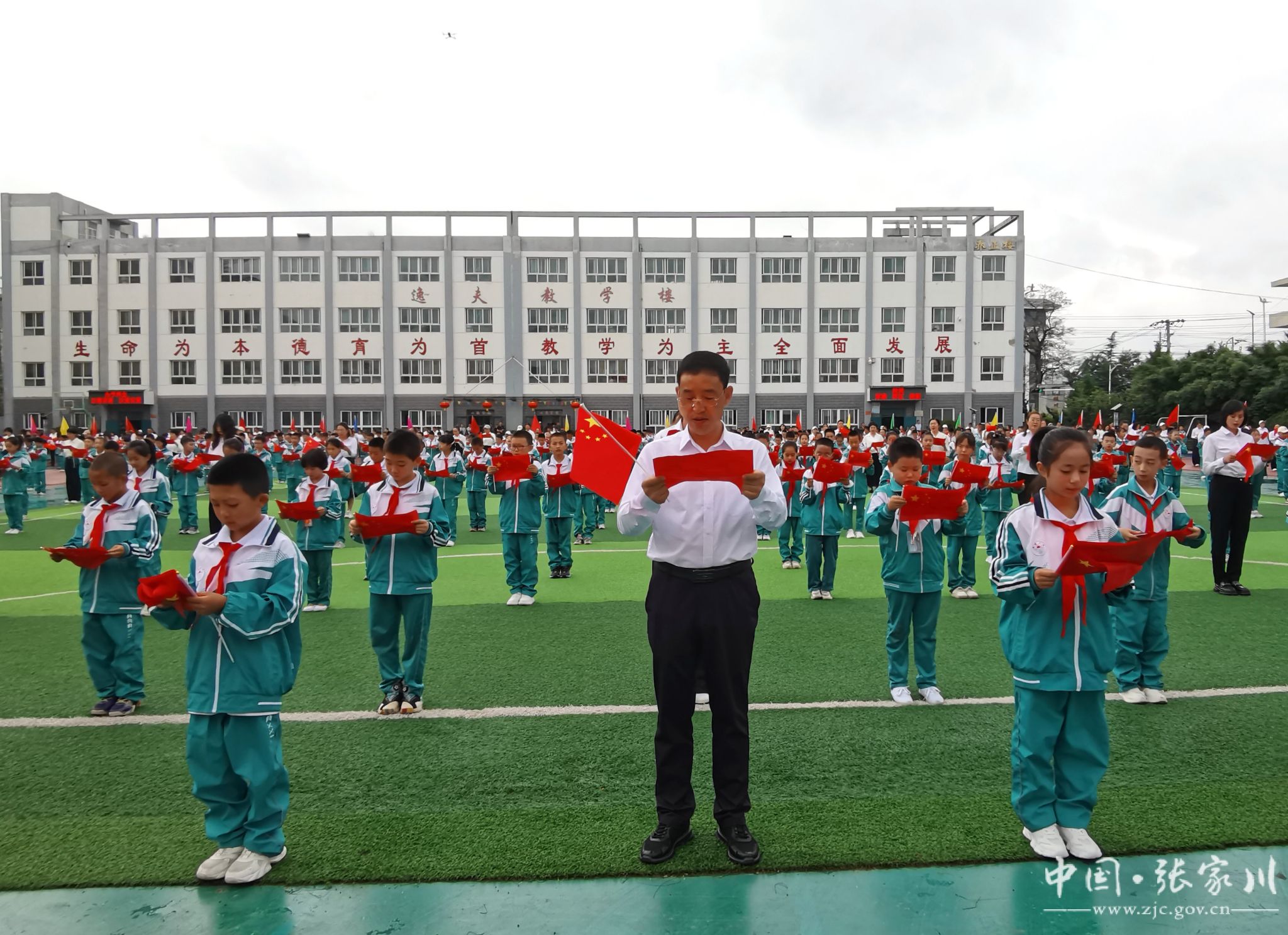 ——张家川县新建小学举办喜迎第40个教师节“书香校园”千人诵读活动