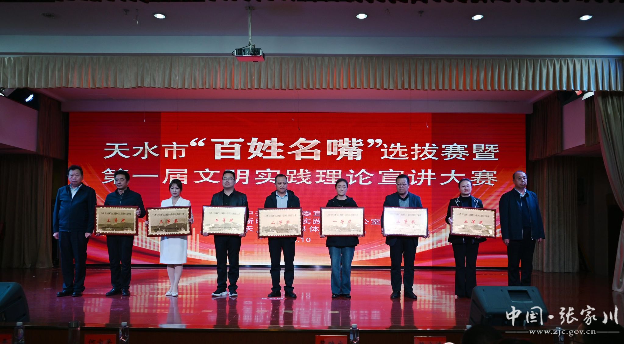 近日,在天水市“百姓名嘴”选拔赛暨第一届文明实践理论宣讲大赛中,张家川县选拔的3名“百姓名嘴”分获1个“三等奖”和2个“优秀奖”,张家川县荣获集体三等奖和优秀组织奖。