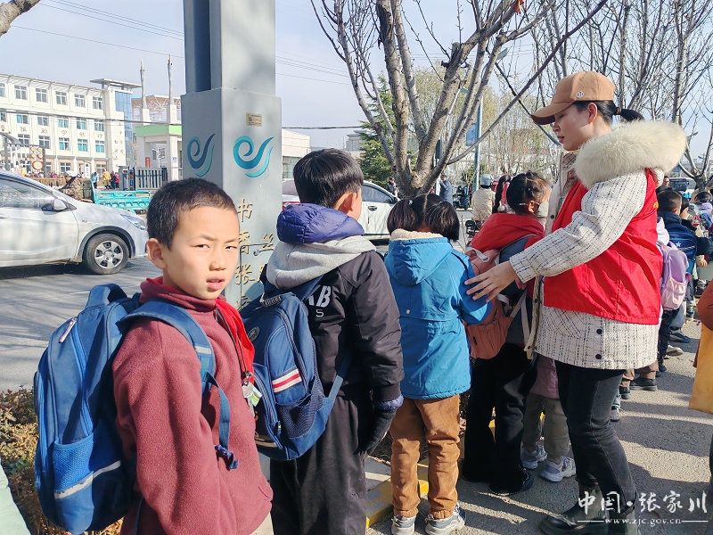 “中午好呀!”、“不要急!”“慢一点”、“排好队”……阿阳小学的红马甲志愿者工作的身影,成为了学校门前一道美丽而温暖的风景线。 由学校教师、家长志愿者、校园保安、属地干警组成“护学岗”,共同守护着孩子们往返校园的路径,构筑起一道坚固的安全防线。