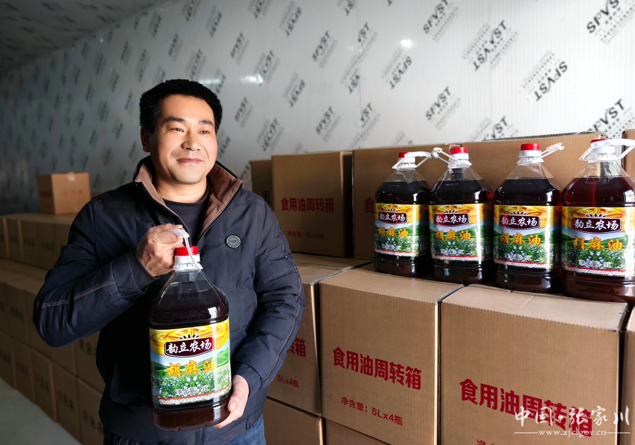 走进农场的储藏和打包区,工人师傅们忙着把灌装好的胡麻油装箱打包,准备发往兰州、天水等地方。