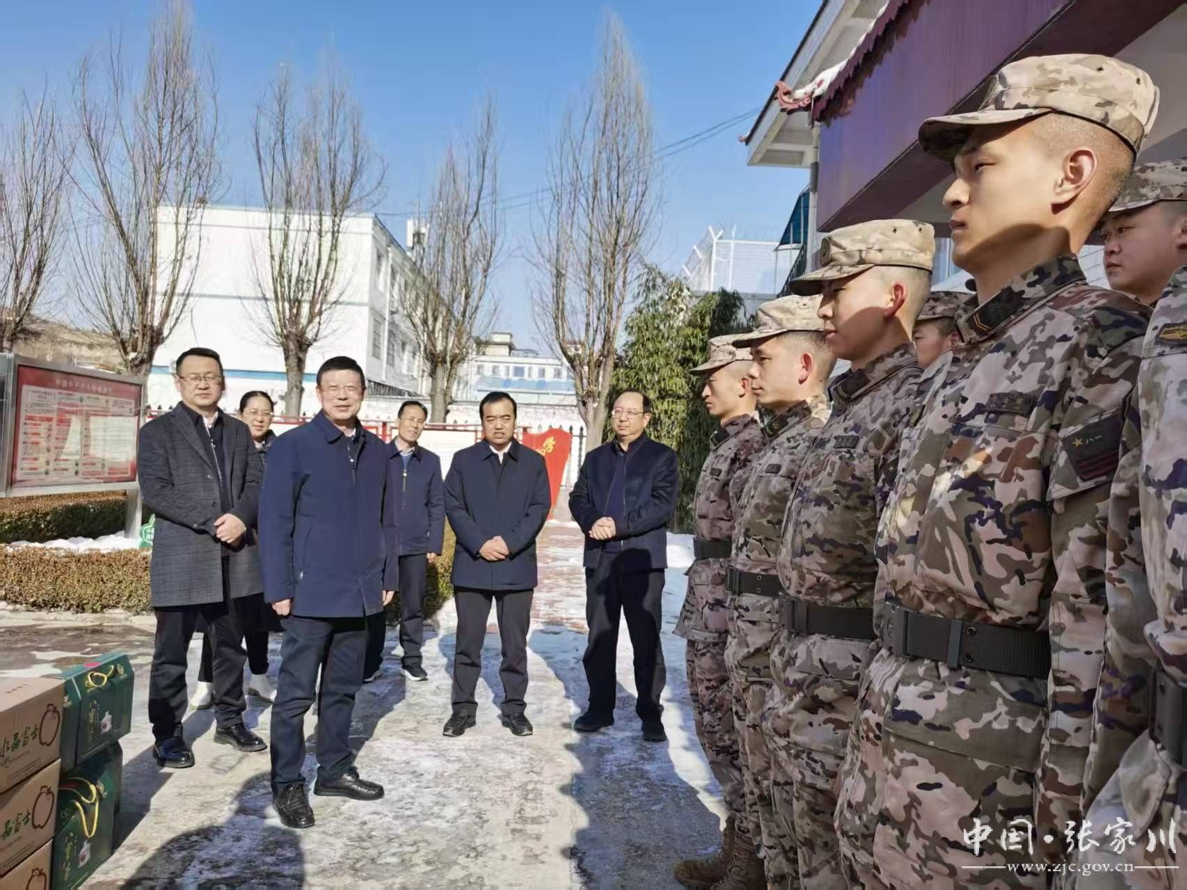 在县人武部、武警中队,县领导都与部队官兵亲切交谈,详细询问了解部队建设、官兵训练、学习和生活等方面情况。张思佳指出,过去一年,驻县部队官兵在深化练兵备战的同时,积极主动参与张家川经济社会建设,围绕地方所需、群众所盼、部队所能,广泛开展拥政爱民活动,为张家川发展作出了突出贡献,发挥了重要作用。希望大家在2025年继续发扬特别能吃苦、特别能战斗的优良作风,围绕中心大局,忠实履行职责,以更加饱满的热情,更加昂扬的斗志,坚决完成党和人民赋予的使命任务,为张家川县各项事业高质量发展保驾护航。县委县政府将一如既往地支持国防和军队现代化建设,持续做好拥军优属各项保障,全心全意支持部队建设,不断巩固军政军民团结良好局面。